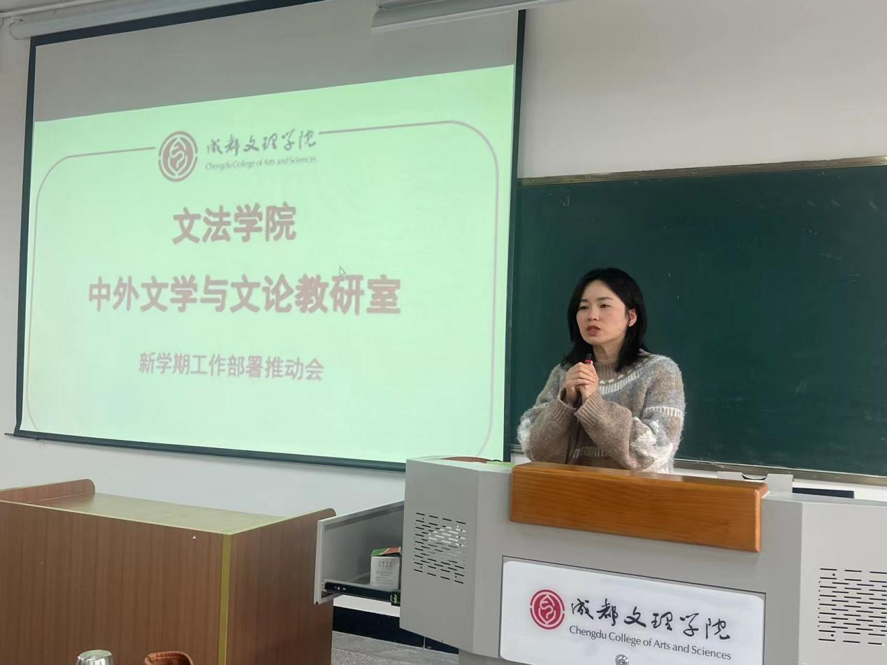 3月7日下午2点,文法学院中外文学与文论教研室隆重召开了新学期工作部署推动会。此次会议旨在明确新学期的工作重点,为教研室的持续发展奠定坚实基础。教研室主任蒋瑜主持了会议,教研室副主任谢荣萍、刘文以及教研室全体教师共同出席了会议。