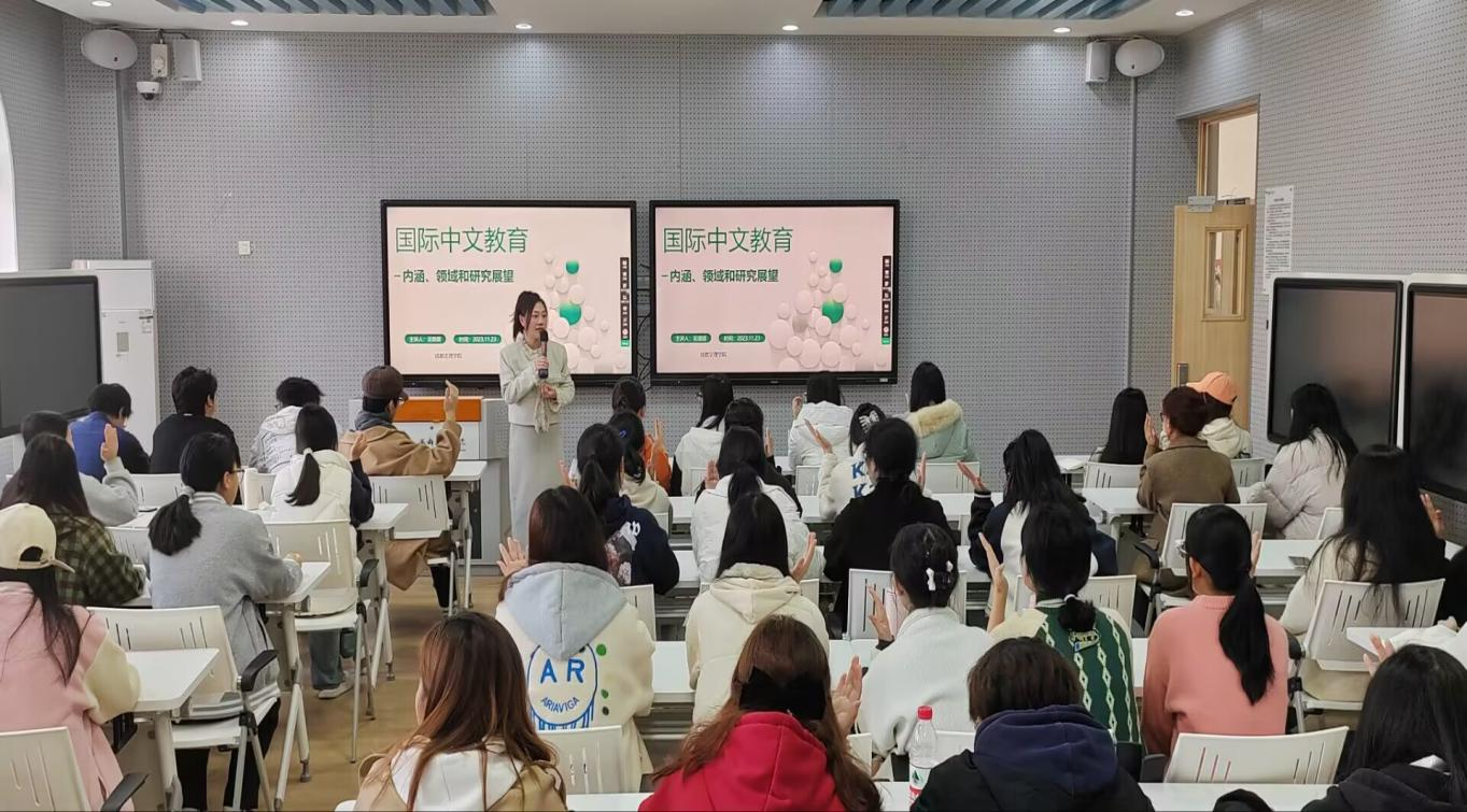 为深入贯彻落实党的二十大精神,深化国际中文教育可持续发展。为开阔学生的国际视野,全面提高其专业技能和综合素质的目的,进一步提高教学技能。11月23号下午13点30分,文法学院青年教师吴璐璐面向全院学生开展“国际中文教育的内涵、领域和研究展望”的学术讲座。
