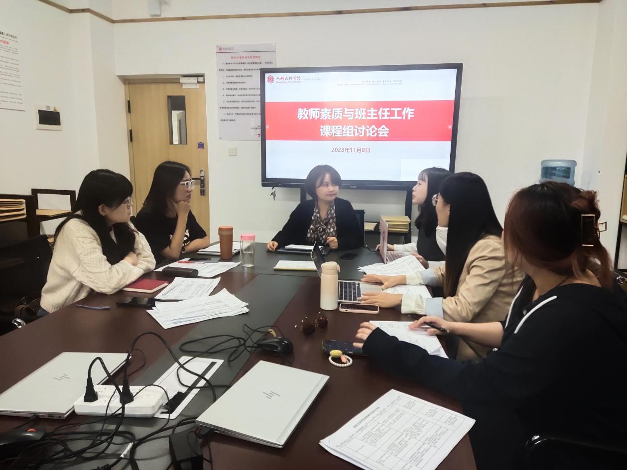 张燕、张玉萍、裴晓倩、陈越、扈明聪、杨晓娟等六名老师对语文学科教育学和模拟课堂与微格教学设计匹配问题进行讨论;张燕、裴晓倩、陈越、杨晓娟等四位老师对教师素质与班主任工作实践项目进行了讨论。