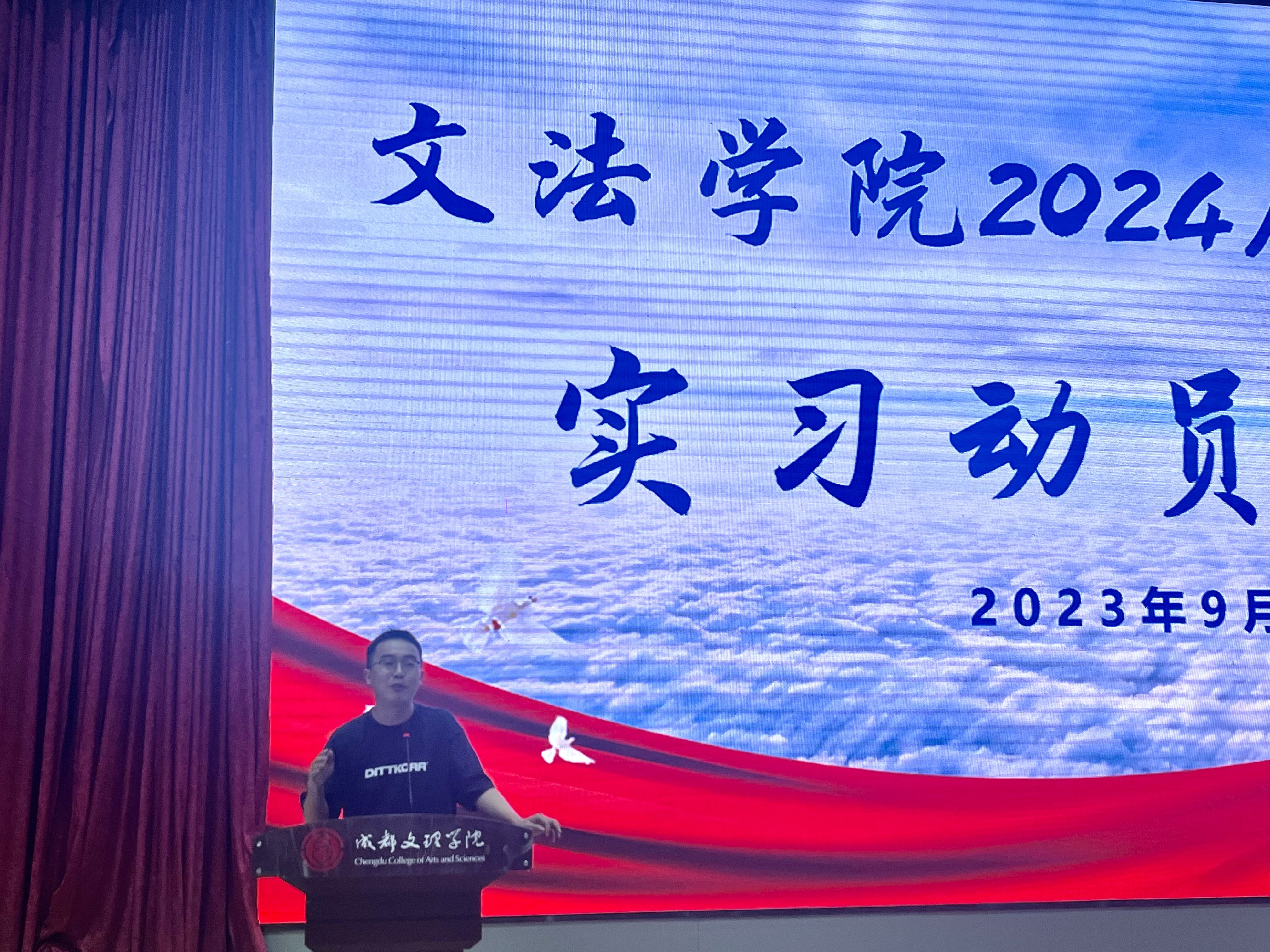 2023年9月19日上午,文法学院在文理讲堂开展2024届毕业生实习动员大会。文法学院院长徐学东、党总支书记陆明烨、党总支副书记李明昌、毕业生辅导员和2024届全体毕业生参加,本次大会由陆明烨主持。