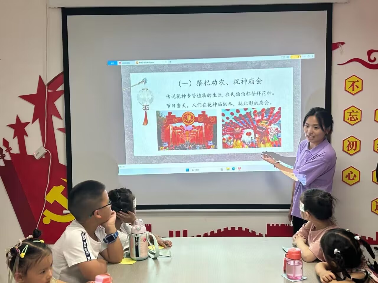 在宣讲中,考察队成员兰雨涵、晏和竹从中国传统节日的分类、传统习俗、民俗故事、猜花谜等几个部分展开讲解,旨在让小朋友们在趣味互动中更好地了解、学习、体会中国优秀传统文化的内在特质,从而带领大家从节日的习俗中追寻祖辈的美好生活,从节日的起源中探求人们对美好生活的祝愿和希冀。