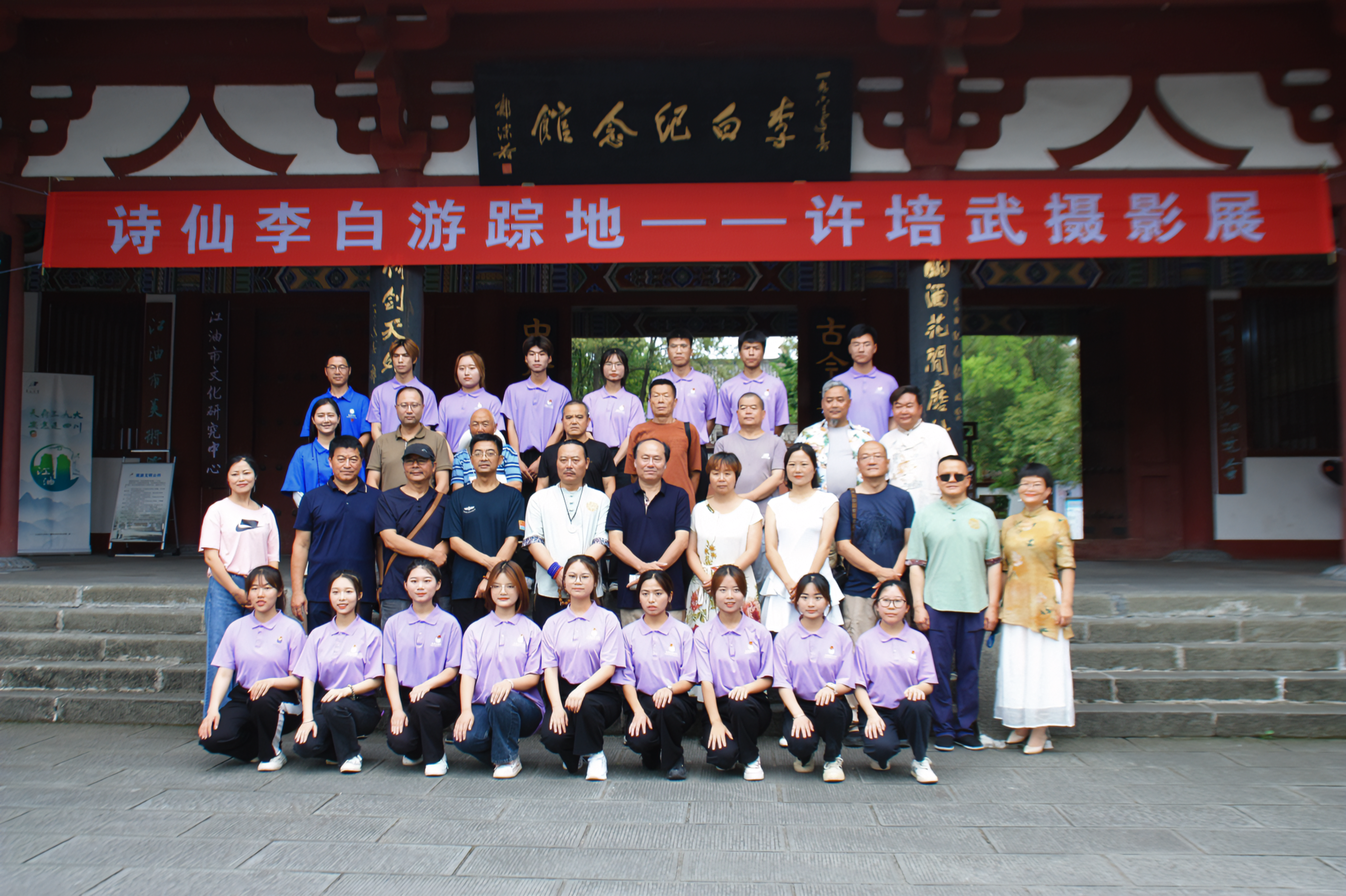 7月12日10时,“诗仙李白游踪地——许培武摄影展”在江油市李白纪念馆开幕。江油市文联主席、李白纪念馆馆长丁颖,著名摄影家、《人民日报》社记者许培武以及江油市美协、作协、书法家协会负责同志出席,成都文理学院文法学院“同语童心·与你同行”推普实践考察队受邀参加了本次开幕式。