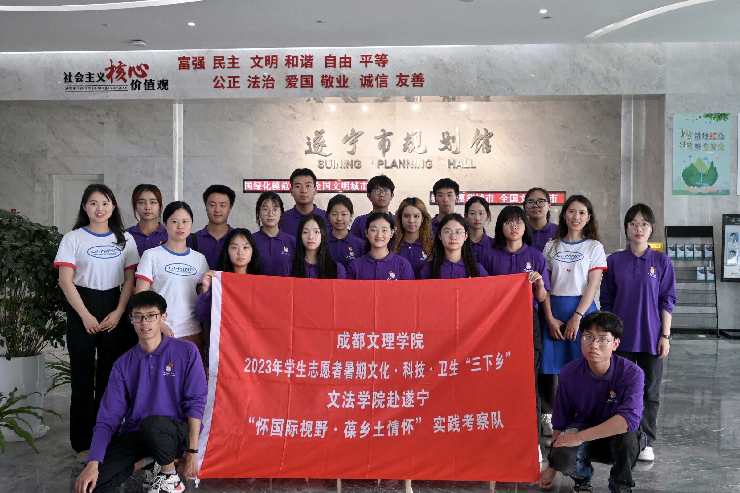为全面实施素质教育,让学生们更直观地了解遂宁悠久灿烂的历史文化,感受遂宁在历史上的变迁、日新月异的城市现代化建设,增强家国情怀,立志将自己的人生规划与家乡、祖国的建设结合起来。2023年7月11日,成都文理学院“怀国际视野·葆乡土情怀”实践考察队走进遂宁规划展览馆开展研学活动。