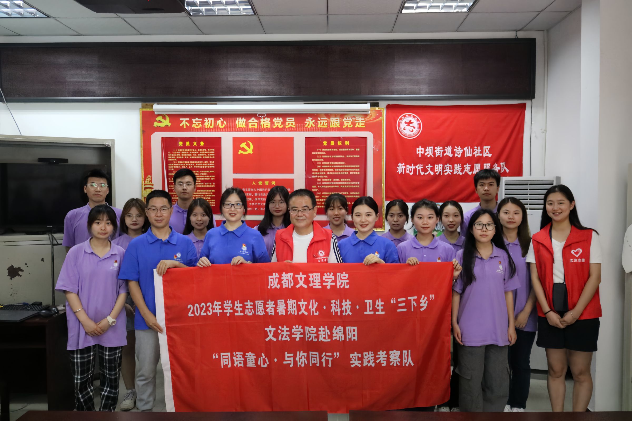为全面贯彻落实党的二十大精神,加强党组织与高校学子共建共联促发展工作。7月3日,成都文理学院文法学院“同语童心·与你同行”推普实践考察队与绵阳市江油市中坝街道党群服务中心在诗仙社区开展“不忘初心·薪火传承”老党员分享交流会。