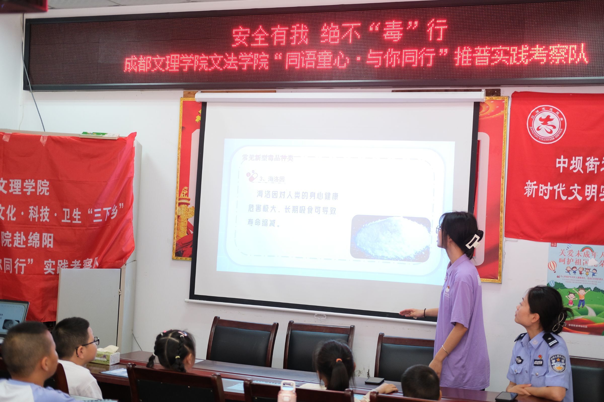 为了增强儿童的禁毒意识和安全防范能力,营造和谐、安全的学习环境,贯彻二十大报告中关于坚持“安全第一,预防为主” 的方针,切实做好儿童安全教育。7月5日15时,成都文理学院文法学院“同语童心,与你同行”实践考察队到基层开展“拒绝校园暴力,防范毒品,防诈骗”主题宣讲活动。