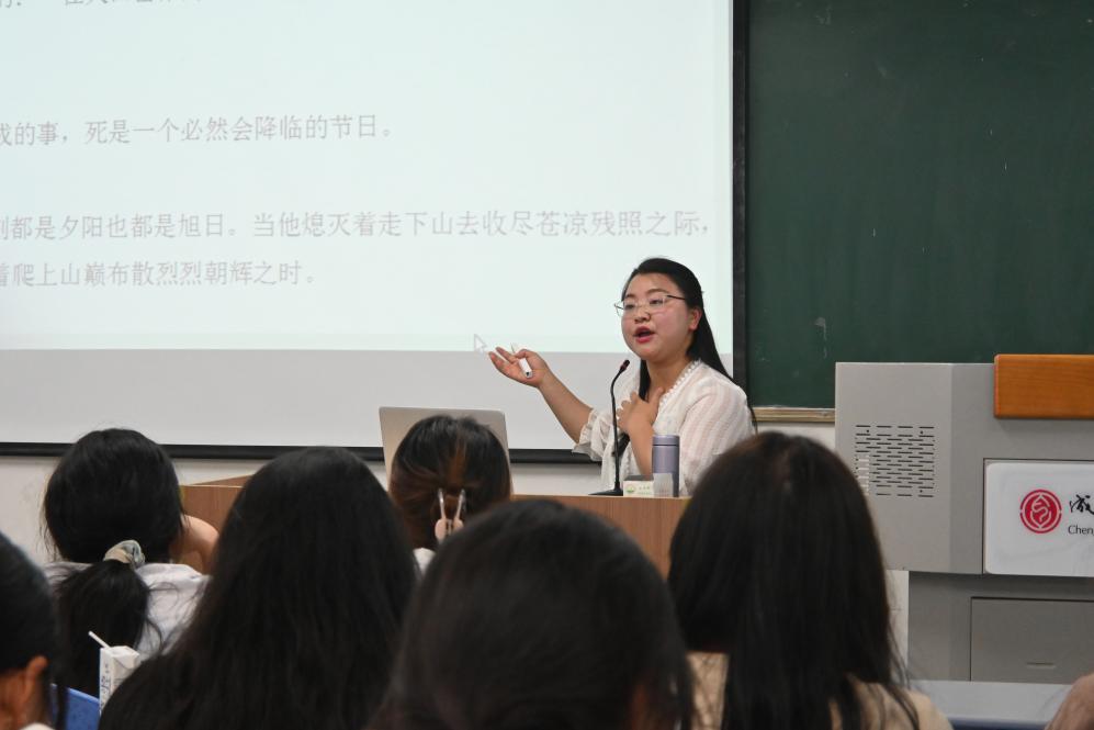 “散文的素材从哪来呢?从生活中来,从阅读中来......”2023年5月25日晚6点半,一场主题为“散文鉴赏与创作”的讲座在主教D402举行,200余名学生参加了讲座。主讲人宋雨霜是文法学院语文教育教研室写作课程负责人,讲座由2022级汉语言文学专业冯定梅同学主持。