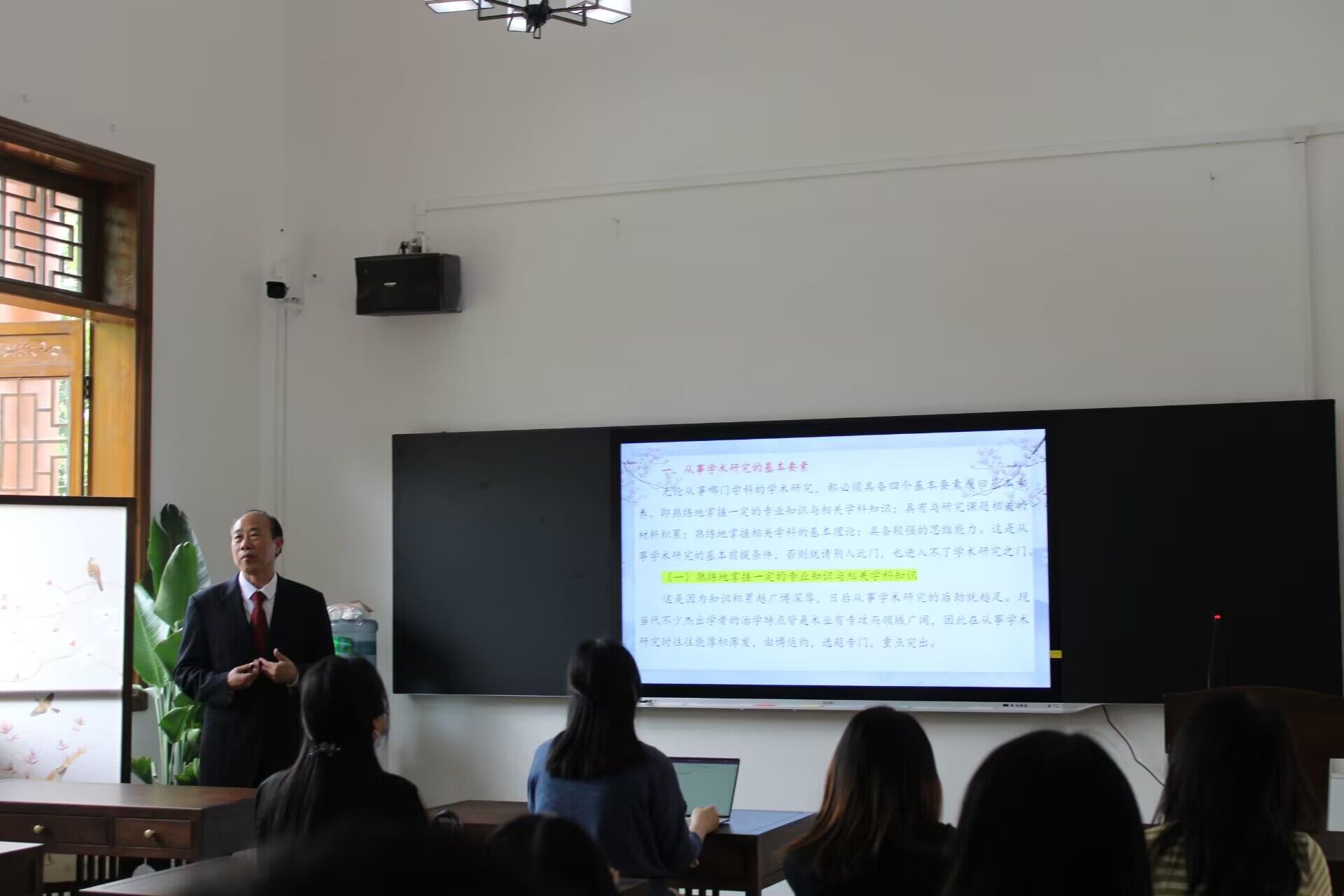 2023年5月25日下午14时,“从事学术研究的基本要素与如何选题”讲座于弘博书院106“杏坛”顺利举行,此次讲座由黎千驹教授主讲,文法学院教师共同参与。