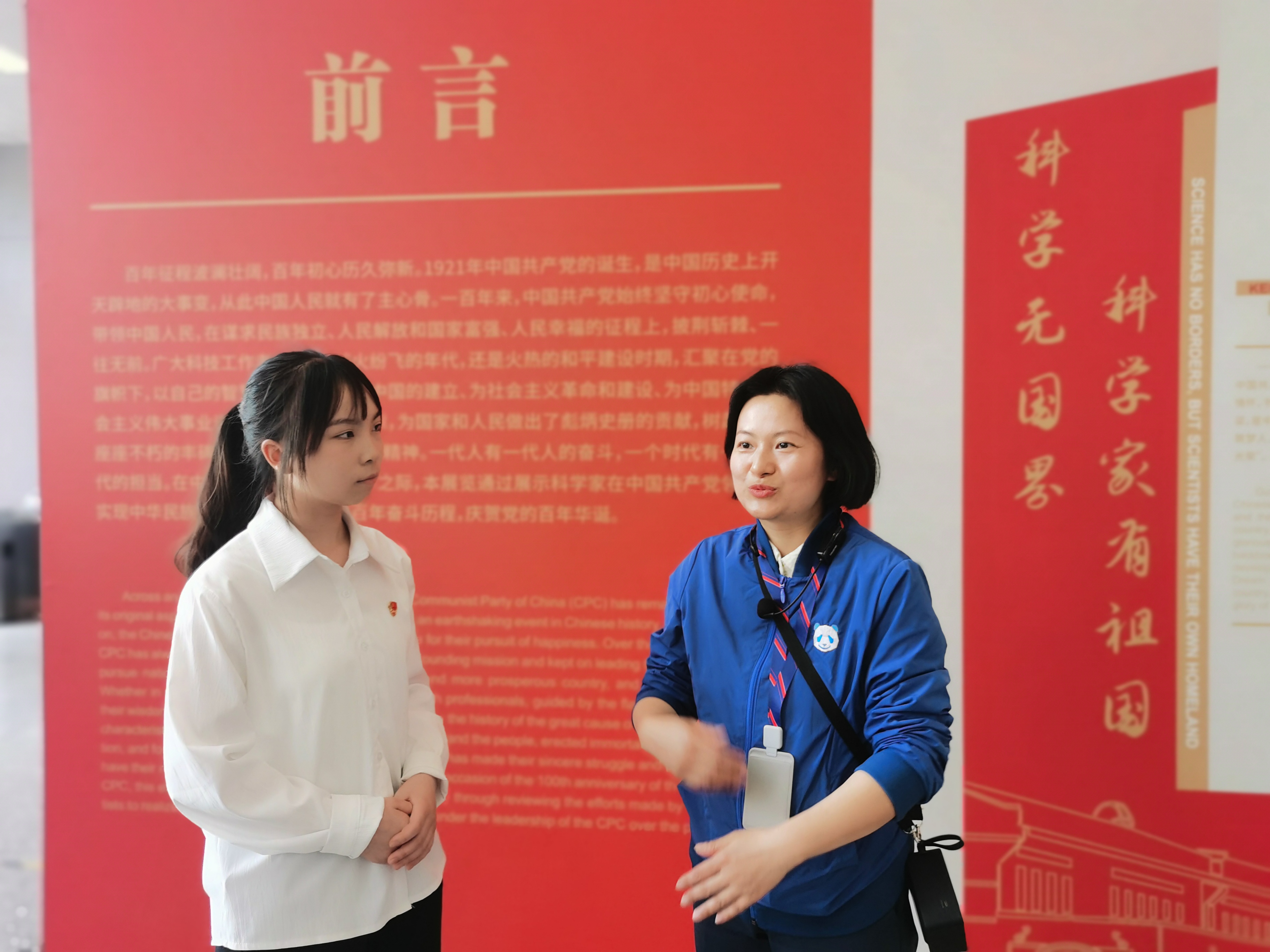 四川科技馆科学辅导员胡康怡老师细致生动地介绍了场馆内载人航天展厅展品,科普了相关的一些载人航天科学知识,讲述了载人航天精神的重要性。并结合“众心向党 自立自强——党领导下的科学家主题展”,从我国科研发展史、科学家奋斗过程以及科研成果等方面剖析了科研创新精神。在讲解结束后,学生党员与胡老师进行了交流,胡老师鼓励学生党员,要自觉学习载人航天事业发展中的先进典型、感人事迹及其精神品质,要以科研人员为榜样,坚信热爱祖国、为国争光的坚定信念,学习勇于登攀、敢于超越的进取意识,坚持科学求实、严肃认真的工作作风,学习淡泊名利、默默奉献的崇高品质。