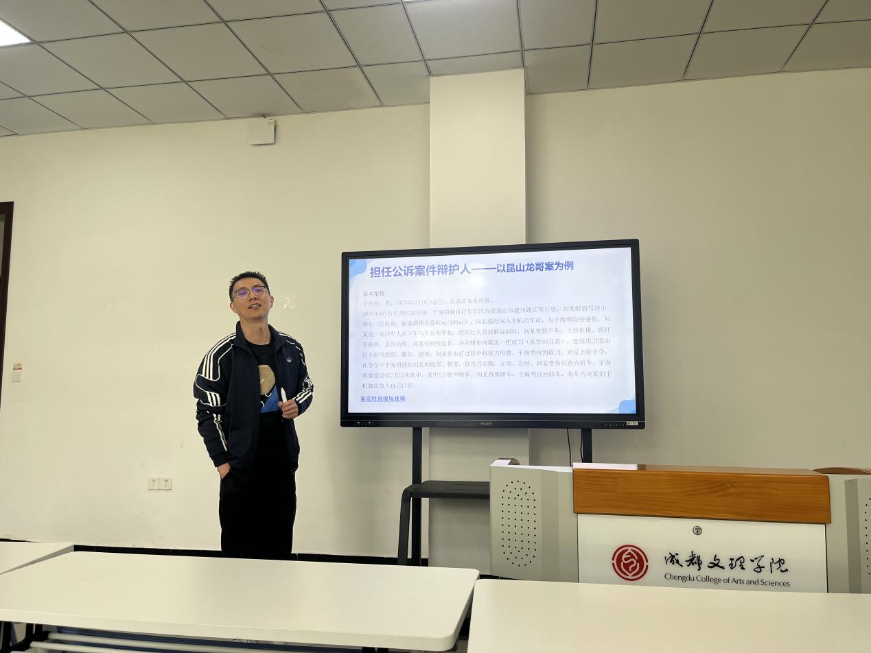 2023年4月6日下午,文法学院应用法学教研室在主教学楼A134举行了第三轮教师磨课活动。本次活动由文法学院副院长冉华庆主持,应用法学教研室主任肖春和法学专业全体老师参加。