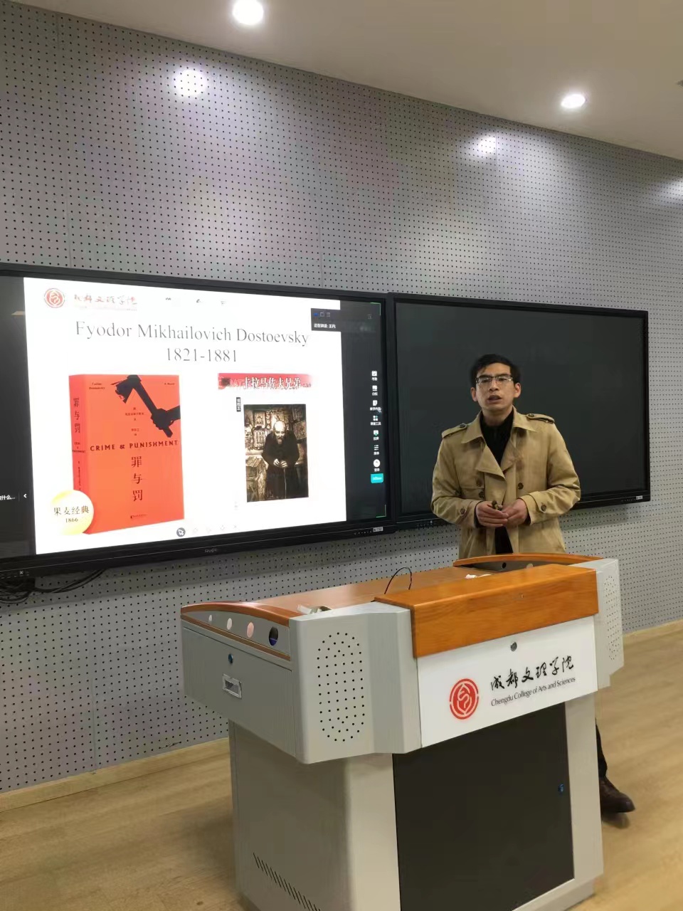 外国文学课程组的老师们依次进行了说课和无生授课。兰莉丽老师与王丹老师主要讲述了哈代的代表作《德伯家的苔丝》的相关知识点;陈克琴老师主要讲授了有关果戈里与《死魂灵》的课程内容;饶文华老师讲解了陀思妥耶夫斯基的生平及代表作品《罪与罚》。在每位老师完成课程讲解后,教授们及谢荣萍老师均对课程内容进行了点评及建议,如:在教学过程中可适当借助网络影视资源讲解文学经典的片段,引入相关文学主题的思索;但在进行视频播放的时候可适当穿插一些教师的讲解,帮助学生理解文学作品的主题;在讲解哈代故居时可关注学生的兴趣点,补充哈代是自己设计的自己的居所;在讲解俄国的现实主义与西欧的现实主义时可对俄国的现实主义文学特色进行拓展;建议可在讲解课程的过程中以文本形式补充讲解陀思妥耶夫斯基的“复调”,等等等等。大家在热烈的研讨氛围中共商解决办法,寻求有效提升外国文学课程实际课堂效果的合理方案。