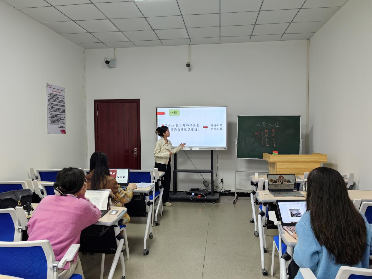 此次培训会于A103微格实训室进行,由教研室主任(兼指导老师)杨娟副教授主持,指导老师张玉萍、谢孟瑶以及三位晋级决赛的学生参与。