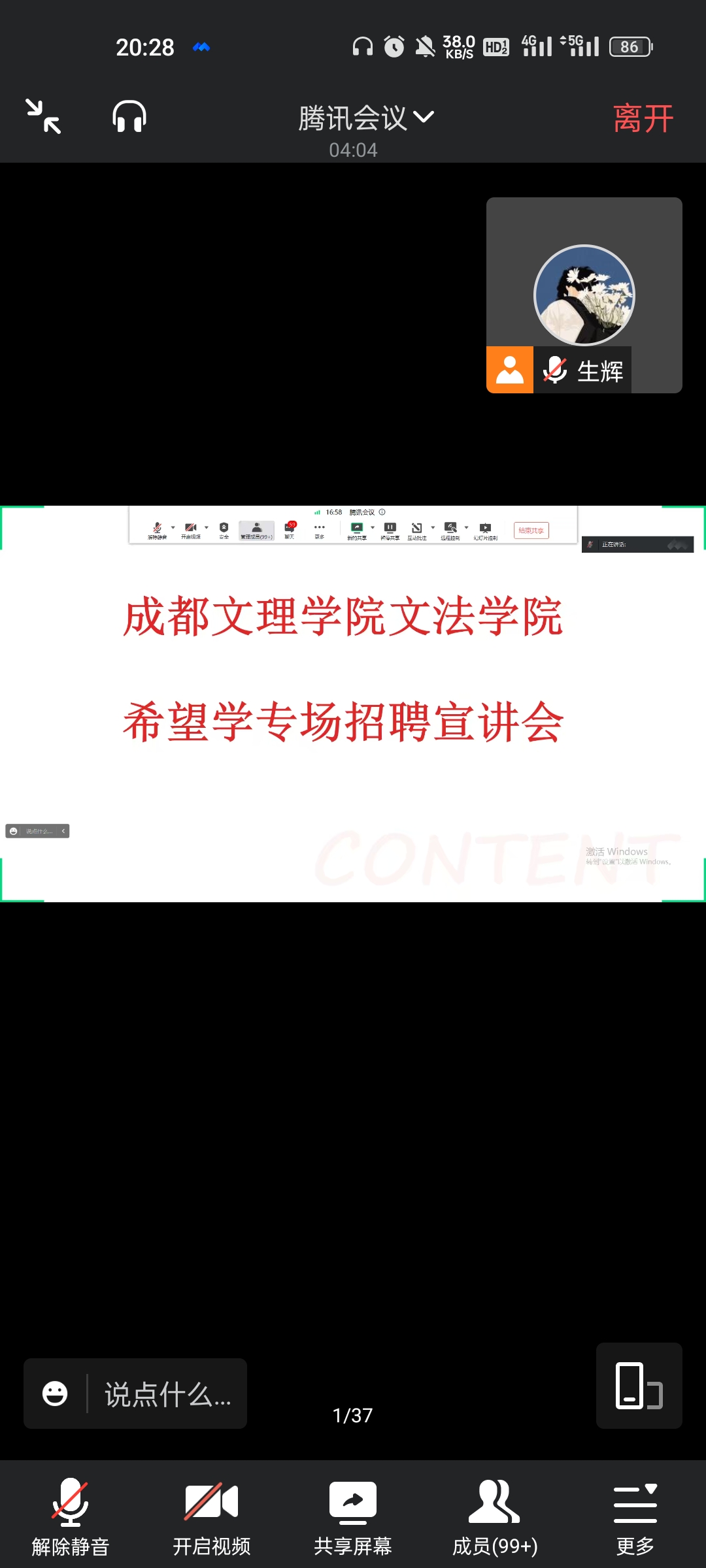 此次宣讲会上,董生辉老师向老师及同学们就希望学培训学校的基本信息、教学理念、招聘岗位、上班地点、薪资待遇以及面试流程进行了介绍,并针对同学们弹幕提出的问题进行了耐心解答,在答疑结束之后,欢迎符合招聘条件的同学积极进行网申投递,并承诺会在三个工作日内筛选简历,并给予回复。最后,希望学董生辉老师鼓励同学们永葆教育情怀,实现个人价值,找到自己理想并愿意为之奋斗的职业目标,也欢迎有志于教育行业的学生加入希望学。
