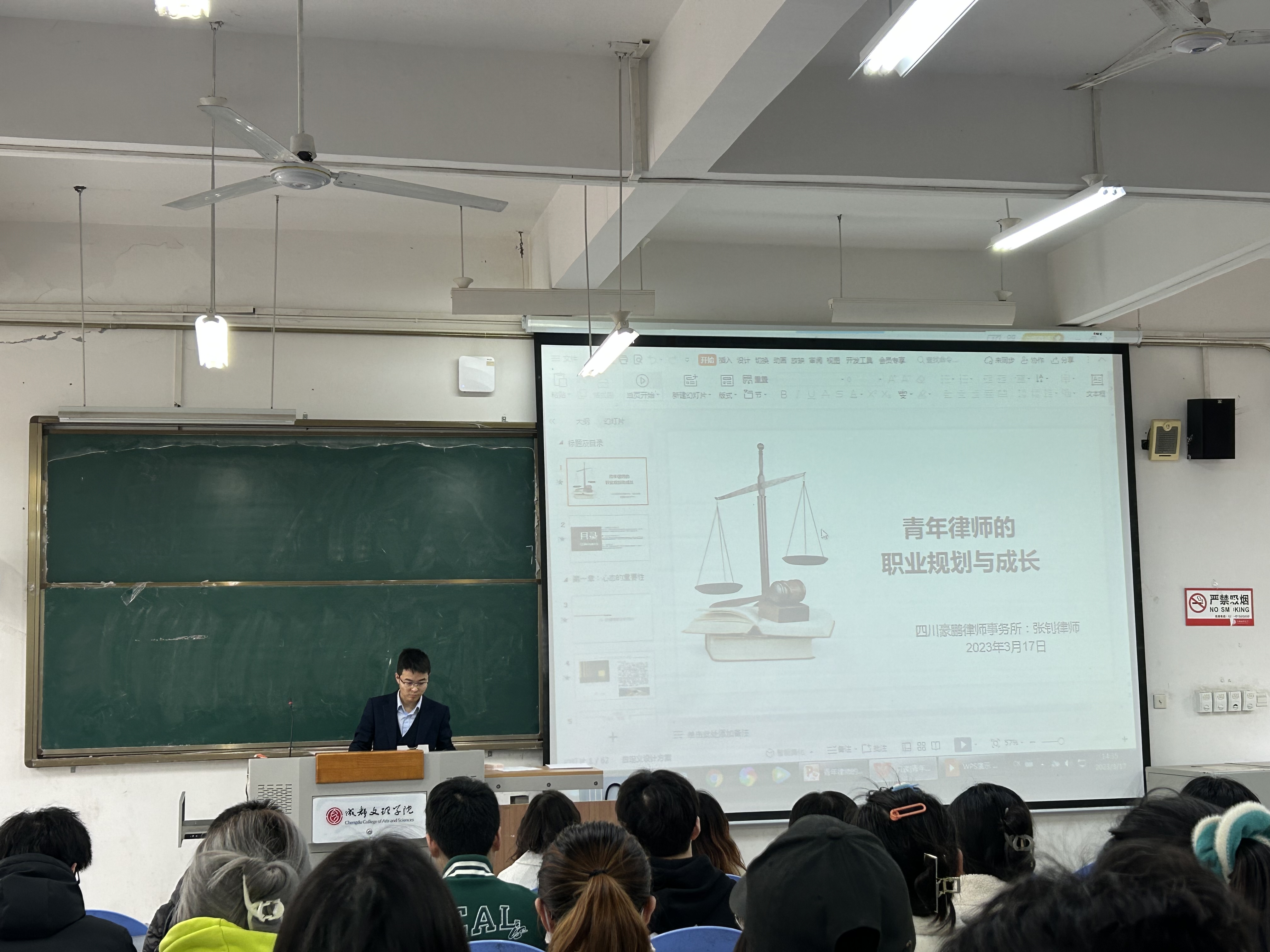 2023年3月17日,文法学院在主教学楼D114举办“青年律师的职业规划与成长”主题讲座。讲座特别邀请到四川豪鹏律师事务所律师、成都文理学院2019届法学专业毕业生张钊担任主讲,2020级法学专业学生参加讲座。