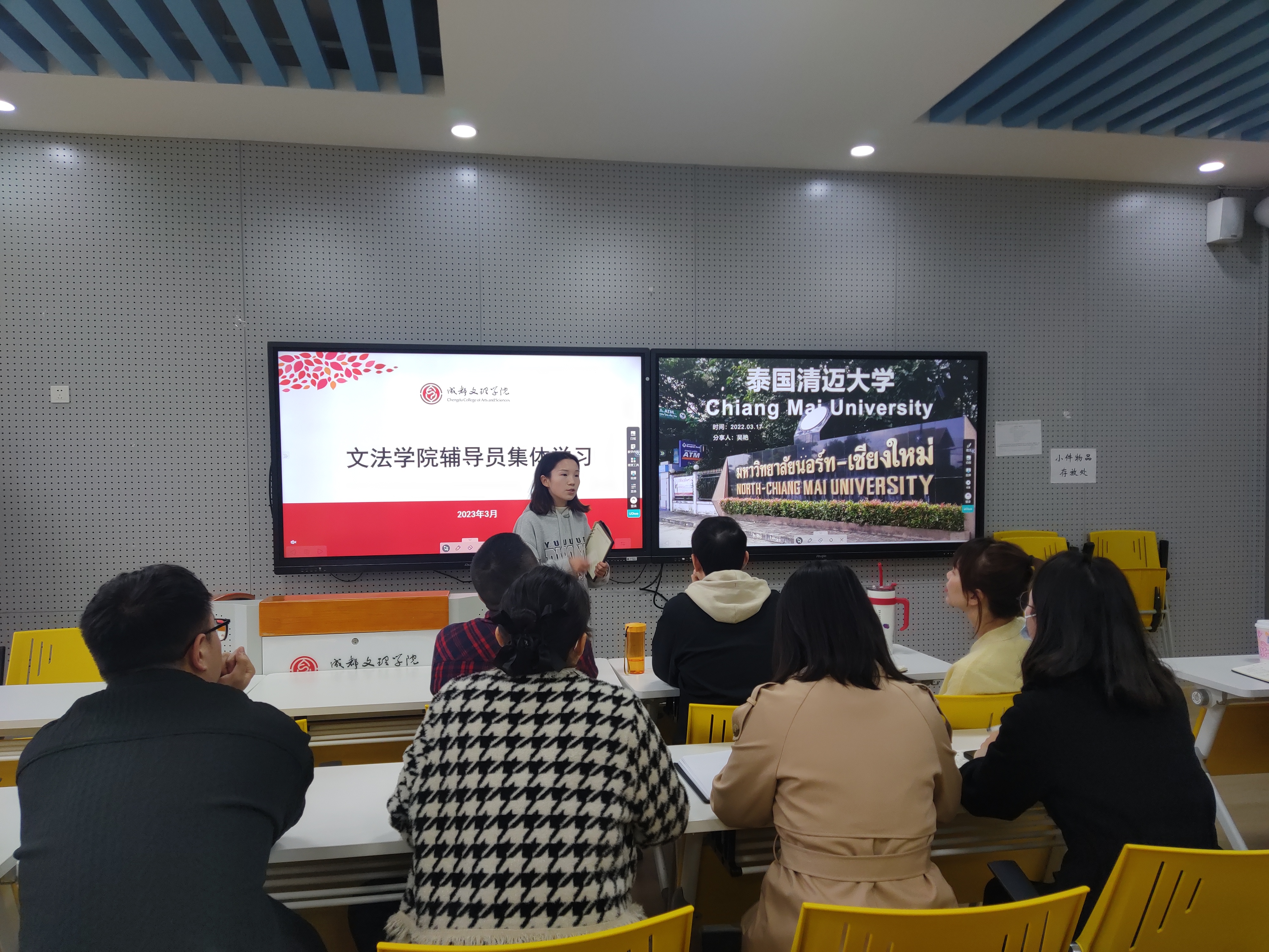 3月17日上午,文法学院在主教学楼C304教室开展以“扩宽教育视野,培育国际意识”为主题的辅导员专题学习活动。党总支书记陆明烨、党总支副书记兼学工办主任李明昌及全体辅导员参加活动。