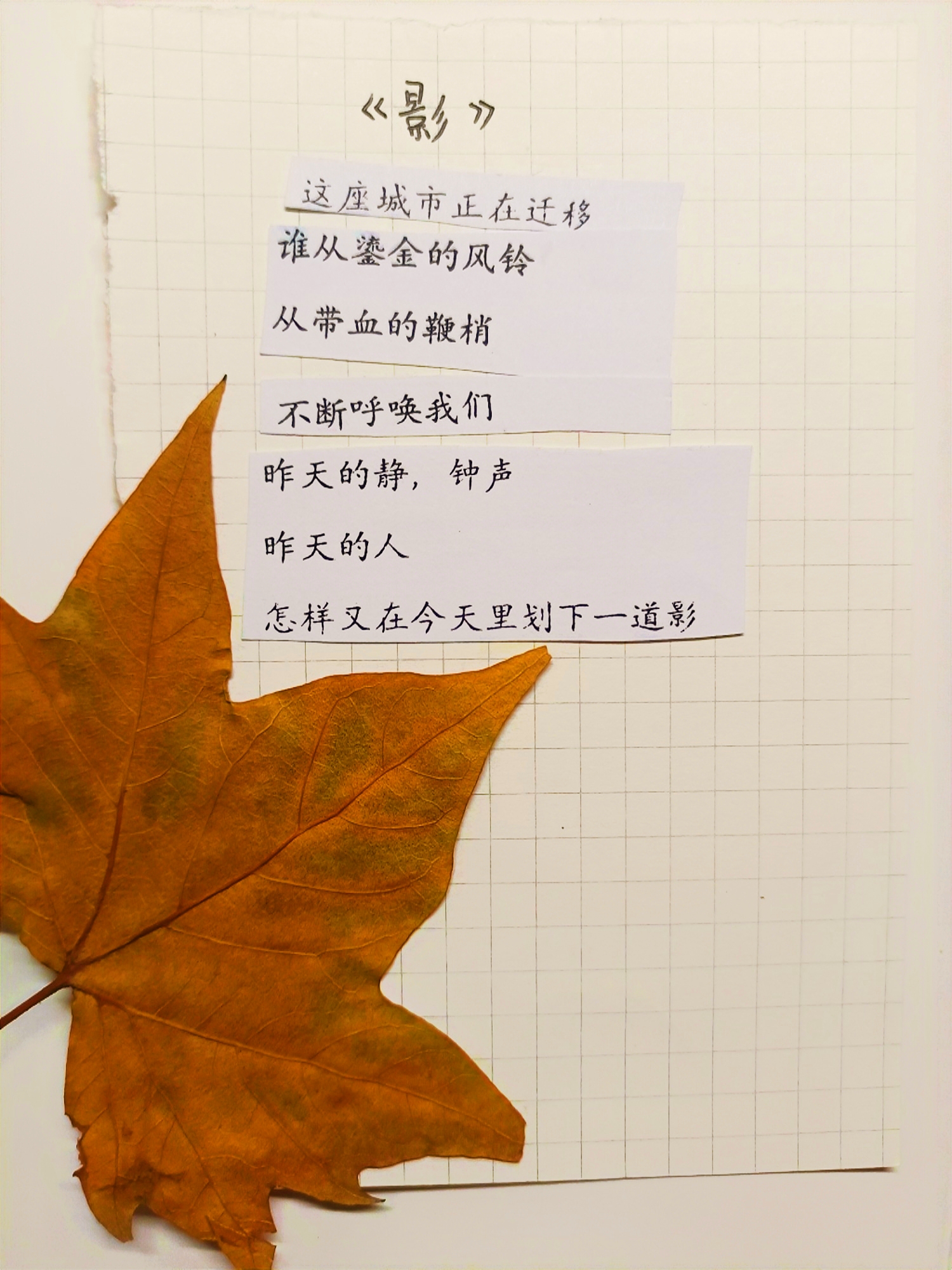 本次活动中,同学们提前准备了海子、徐志摩、林徽因、顾城、北岛、木心等八位中国著名作家的诗歌,活动参与者可从中选出自己喜欢的诗句进行拼贴,最终组成一首首全新的、专属的诗歌,这些“新诗”或由一人完成,或由三两好友共同完成,或由几个素未谋面的陌生人错时空完成,并最终由摊主整理后,依托学院公众号进行成果展示。