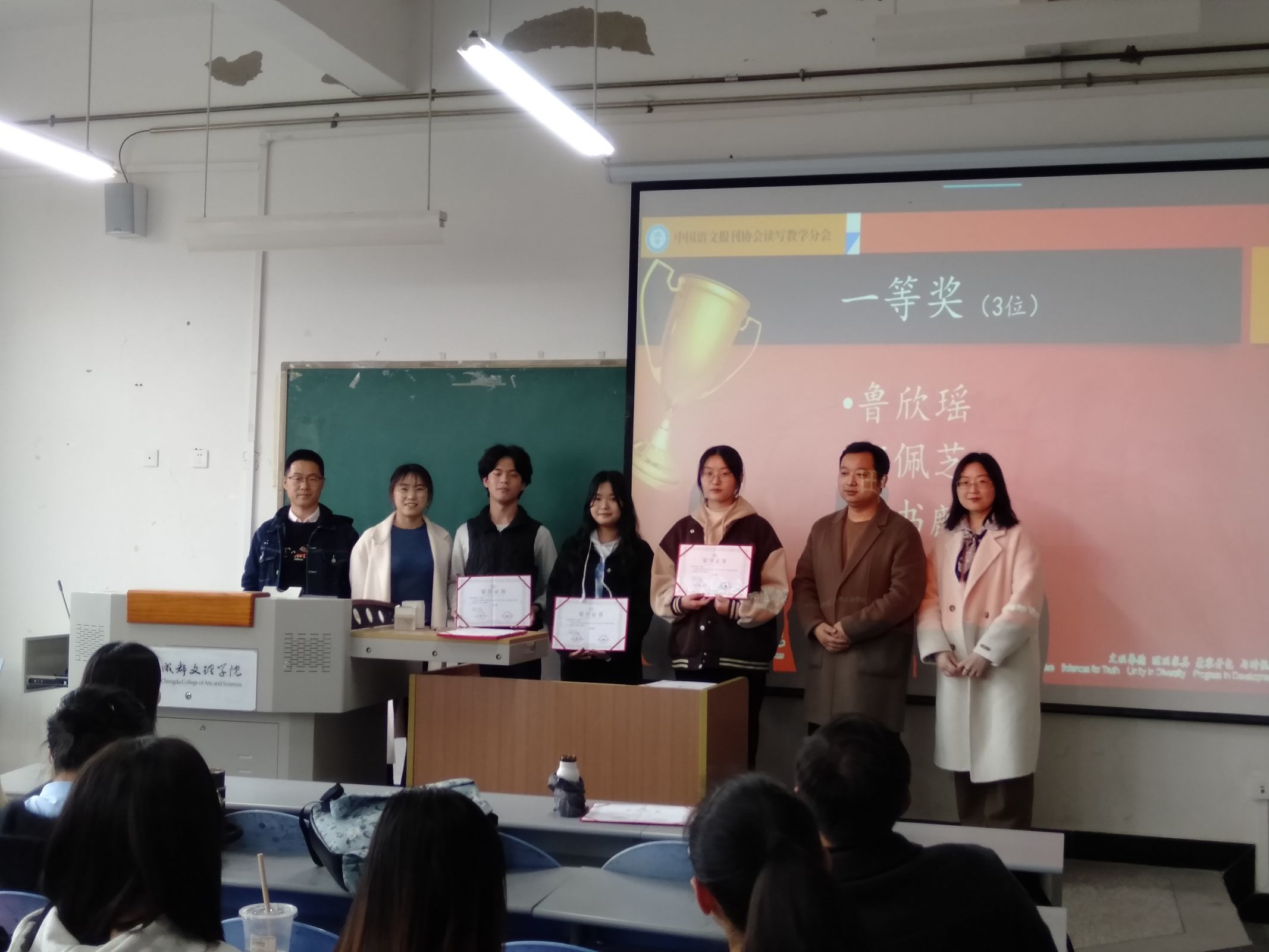 大赛指导老师分别为获得一二三等奖的同学颁奖,并合影留念。最后,袁倩老师鼓励大家踊跃参加各项各类赛事,不负青春韶华。