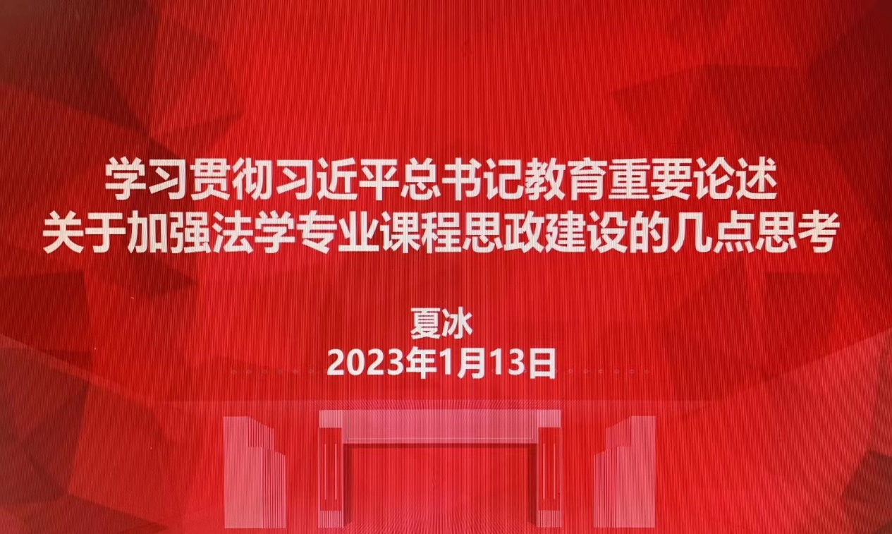 为深入贯彻落实习近平总书记关于教育的重要论述和系列讲话精神,2023年1月13日下午2点,文法学院法学专业通过腾讯会议开展了第二场“本科教育思想大讨论”活动。此次活动邀请到了我校马克思主义学院副院长夏冰教授作“学习贯彻习近平总书记教育重要论述 关于加强法学专业课程思政建设的几点思考”的主题讲座,文法学院副院长冉华庆教授出席活动,全体法学专业教师参加。活动由应用法学教研室主任肖春主持。