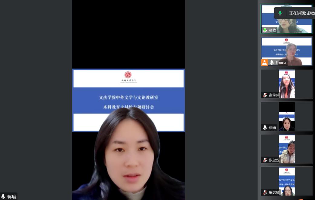 为积极响应习近平总书记关于大学教育的重要论述,学习全国教育大会精神,贯彻落实党教育方针,主动适应高等教育发展新形势,促进教育教学改革与创新,提升学校本科教育人才培养能力和质量,中外文学与文论教研室于2023年1月3日14:00通过线上会议举行了本科教育大讨论第二场专题研讨会。