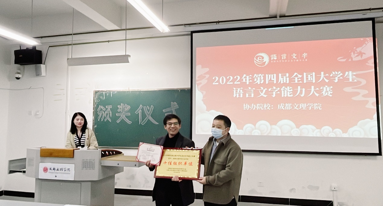 秋高气爽,金桂飘香。10月13日,第四届全国大学生语言文字能力大赛成都文理学院分赛场颁奖仪式在b101教室成功举行。弘博书院负责人饶文华,大赛指导老师袁倩、项乙朋、唐小琴等出席此次颁奖典礼,初赛获奖学生代表、决赛获奖学生以及热情高涨的大一新生参加了仪式。