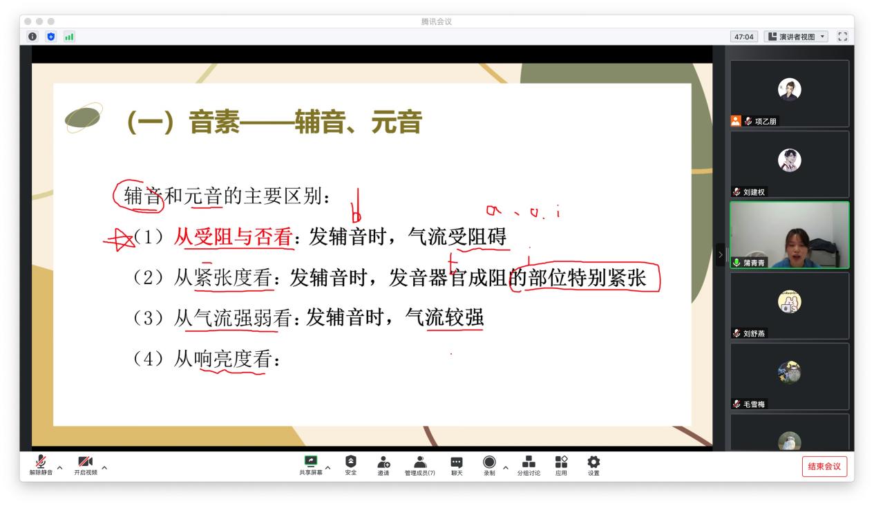 此次磨课活动主要分为讲课、互评、总结三个环节。在学科组长的带领下,老师们围绕各知识点进行讲解,并从教学内容、教学方法与技巧两方面进行总结和讨论。经验丰富的老教师们针对讲课内容作出了详细的指导,老师们讲课过程中存在的问题,提出了切实可行的解决方案。本次在疫情之下举行的线上磨课,是教师们进行知识切磋和经验交流的宝贵机会,是特殊时期提高教师教学水平的重要平台。