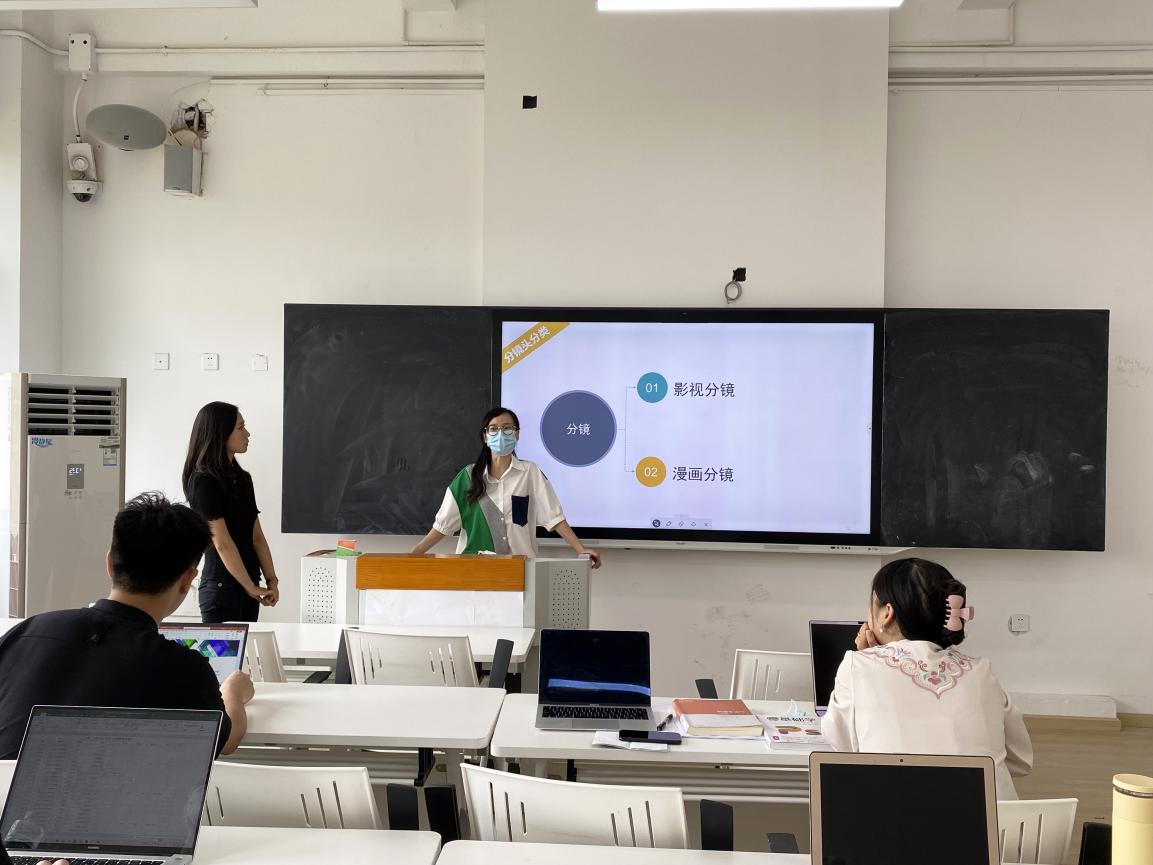 针对《多媒体教育技术》这门课程,文化传播团队几位授课老师针对不同的知识点进行了集中磨课,如刘宛欣老师演示了“教学视频的制作与应用”,唐乐乐老师演示了“分镜头脚本的写作”,朱志雄展示了“教师教学中的Excel运用、教学流程图的绘制”。李华老师在线讲授了“新建项目与使用序列预设”的内容。其中,唐乐乐老师的“分镜头脚本的写作”一课,在课程开始之前介绍课程目录,包括分镜头脚本的概念、分镜头脚本的基本内容和分镜头脚本的写作方法,强调分镜头脚本的写作方法为课程重点。课程导入部分,引导学生思考“为什么要剪切和组合镜头“,并带着对这一问题的探索,逐个观看库里肖夫实验的三组镜头组合,进而和学生讨论并得出实验结论——库里肖夫效应和蒙太奇理论,以此为切入点展开对分镜头脚本概念的学习,在教学中放入多个知名导演的分镜头手稿作为案例展示,激发学生学习兴趣。生动的课堂获得了同行教室们的认可。