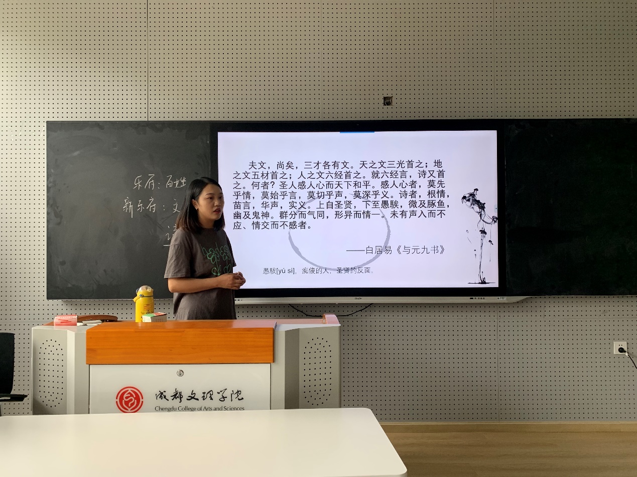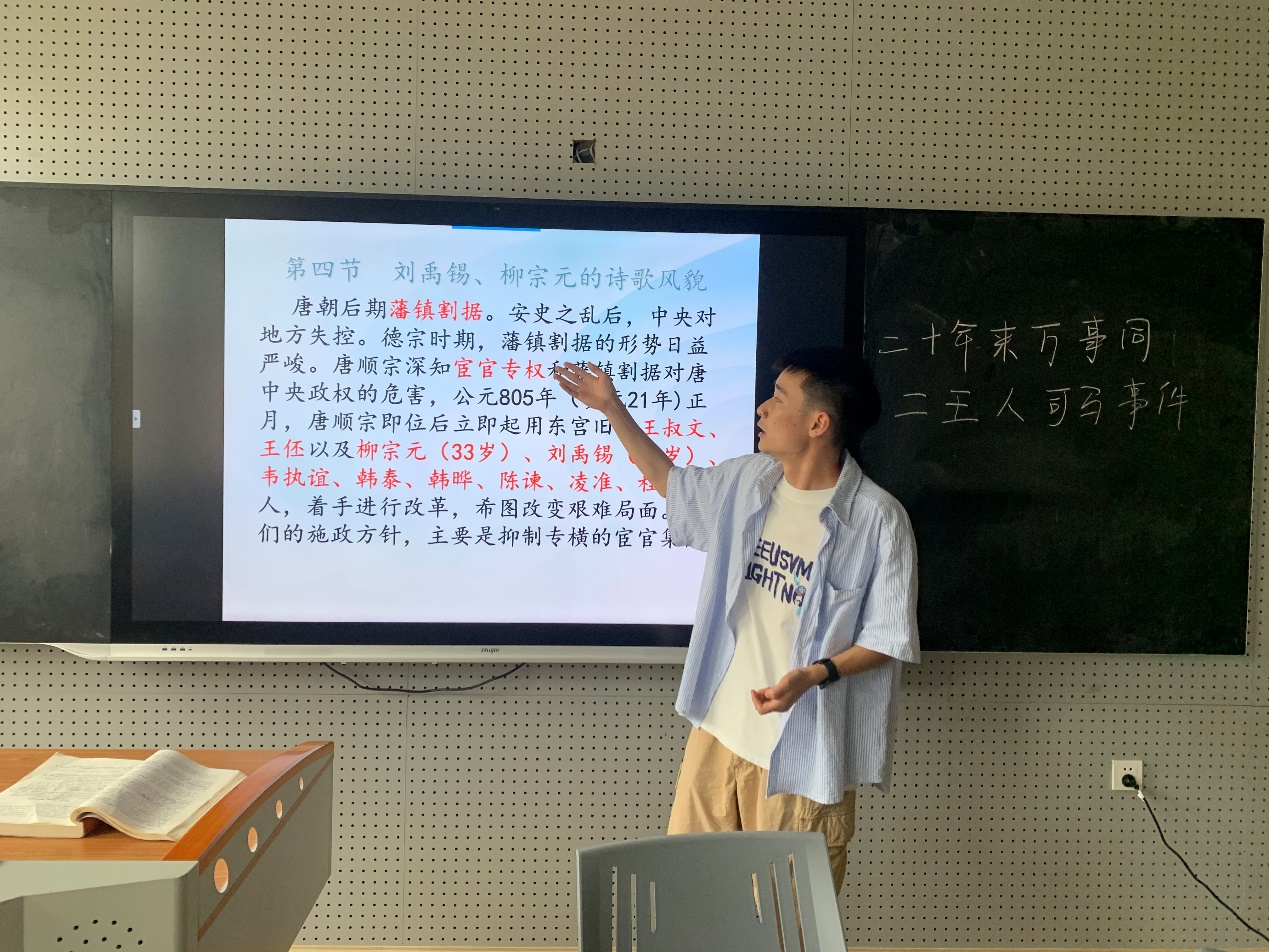 最后,教研室主任蒋瑜老师、刘洪仁教授依次从教态、教学内容、教学管理等方面对老师们进行点评和建议,并对此次磨课活动进行了总结,指出:在中唐的社会背景下,元白诗派几位诗人继承了传统儒家文化中的“美刺”“诗言志”传统,以清明天下为己任。这种关心家国的责任感、奉献自己的情怀,值得每一位青年学子学习。