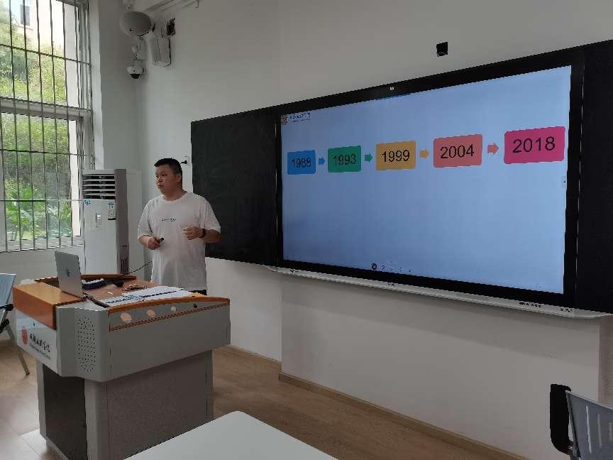 首先,由执教教师杨智主讲“1982年宪法的五次修改”。杨智老师从我国改革开放的实践出发,同时结合党的十三大至党的十九大的报告内容以及党和国家的系列重要政策精神,中间穿插深圳经济特区发展、私营经济发展中的小故事,对我国现行宪法的5次修宪背景进行了较为充分地讲解,使得知识点具有理论性、实践性和故事性。这些授课内容的安排,能够让学生对加强依宪治国和全国推进依法治国的时代内涵有更进一步的认识,对在法治轨道上推进国家治理体系和治理能力现代化有新思考。