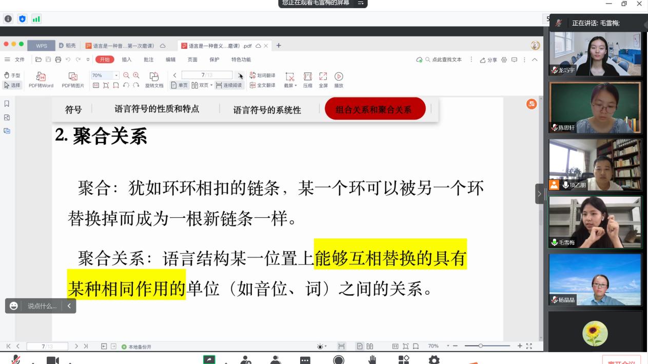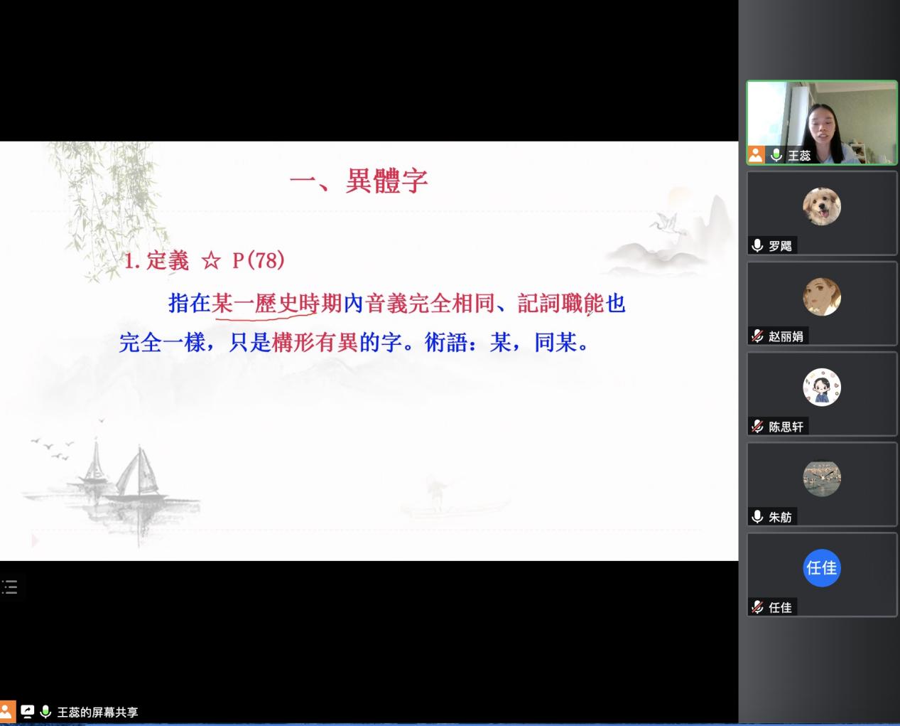 为提升教学能力和教学质量,2022年8月11日,文法学院语言学教研室全体课程组开展线上磨课活动,本次活动由项乙朋、袁倩老师主持,语言学教研室全体老师参与。