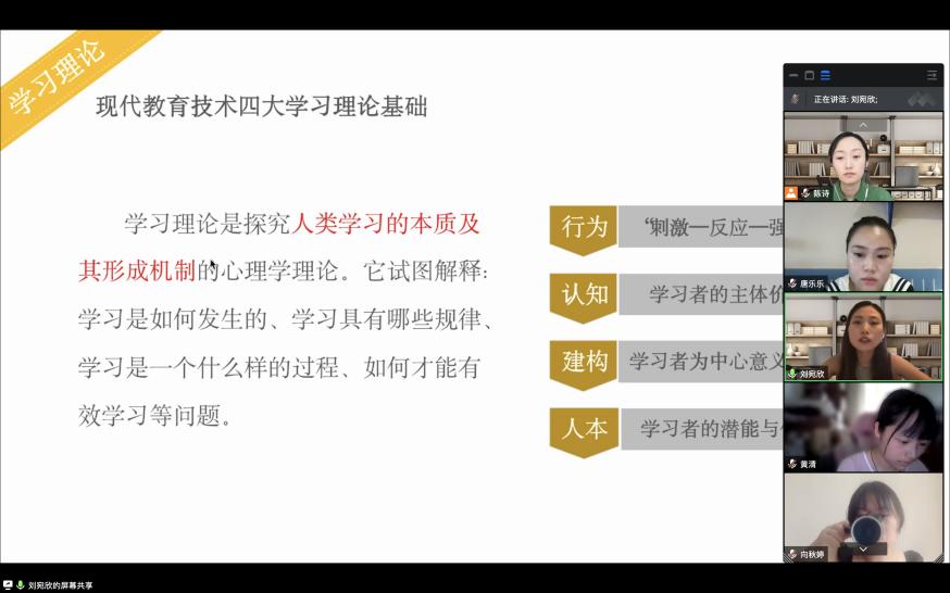 多媒体教育技术课程组的刘宛欣老师、李华老师、朱世雄老师、唐乐乐老师分别就“现代教育技术的理论基础”、“分镜头脚本的撰写”、“以教为主的信息化教学设计”和“微课的设计与制作”的课程内容进行了无生授课。几位任课老师对该课程的理论与实操的结合方法,以及各个实操环节的教学组织和考核展开了充分的讨论;并针对学时少、教学内容多的问题提出了线下线上相结合的教学模式;另外,在整个活动开展过程中,老师们在授课表达方法上和与师生互动环节的组织上也进行了多次打磨。