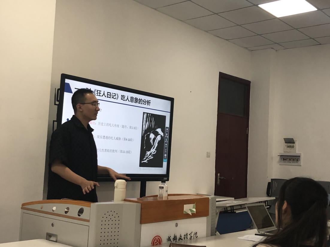 此次活动由教研室主任蒋瑜老师主持,以课程为单位进行说课和无生授课。“古代文学”课程组的王蕴老师和韩高洁老师,分别讲授了《诗经》和《离骚》的相关内容。“现当代文学”课程组的封羽老师和段燕老师,分别就“现当代文学作品选”和“现当代文学史”的课程内容展开讲解。“外国文学”课程组的陈克琴老师和王丹老师讲授了《古希腊神话》与《荷马史诗》相关内容。“文艺理论”课程组的张通老师和王少龙老师分别就“文学理论的性质和形态”和“马克思主义文论当中的艺术反映论”进行授课。