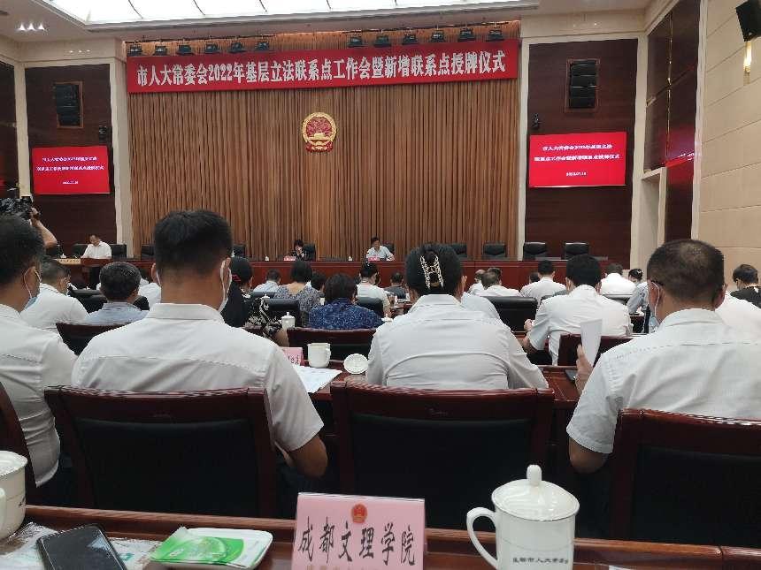7月15日,市人大常委会召开2022年基层立法联系点工作会,并举行新增联系点授牌仪式。市人大常委会主任包惠出席并讲话,市人大常委会副主任巫敏,秘书长苏鹏参加。会议通报了近年来我市基层立法联系点工作开展情况以及今年扩点提质工作有关情况,部分基层立法联系点负责同志作交流发言。包惠向2022年新增的25个基层立法联系点授牌,我校是新增25个基层立法联系点中唯一的高校联系点,文法学院副院长冉华庆代表学校出席会议并接牌。我校将切实发挥好基层立法点的作用,使基层立法联系点成为立法直通车;并切实履行好职责,办出亮点、办出特色,将其打造成我校服务地方法治工作的“名片”。