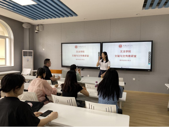 为进一步提高教学质量,促进教师专业化成长,实现课堂思政和教学改革的不断完善。2022年6月16日,文秘与文传教研室举行了课堂思政与教学经验分享会,教研室主任陈诗老师、教研室副主任刘波老师以及教研室各位老师参加了会议。