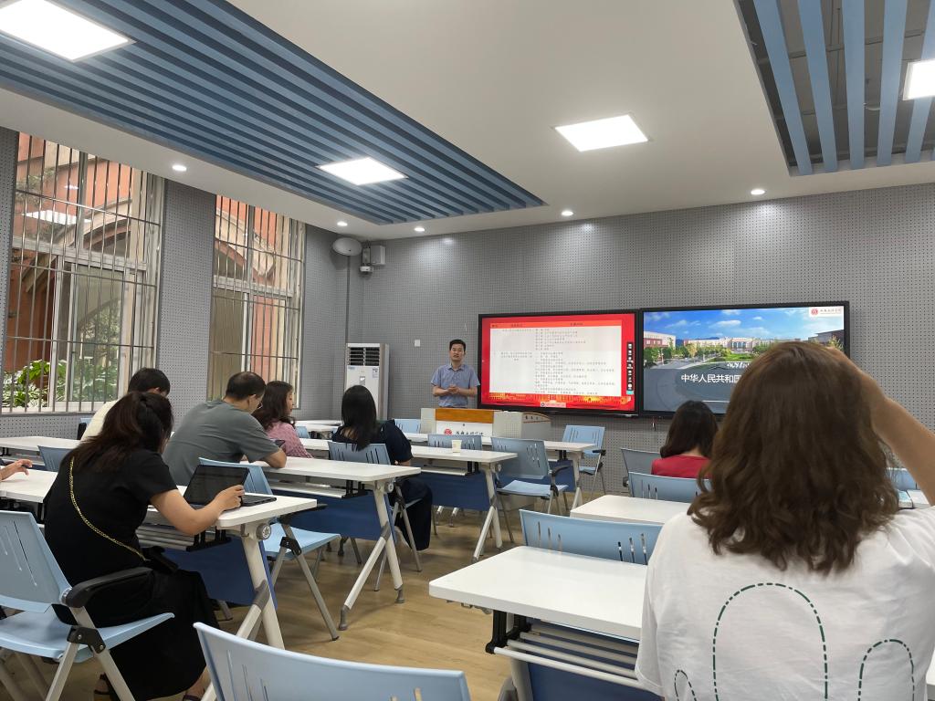 2022年6月9日下午1点30分,文法学院法学专业全体教师在行政楼C103召开实验室安全培训会议。会议由应用法学教研室主任肖春老师主持,法学实训中心副主任田洋老师主讲,全体法学专业教师参加。