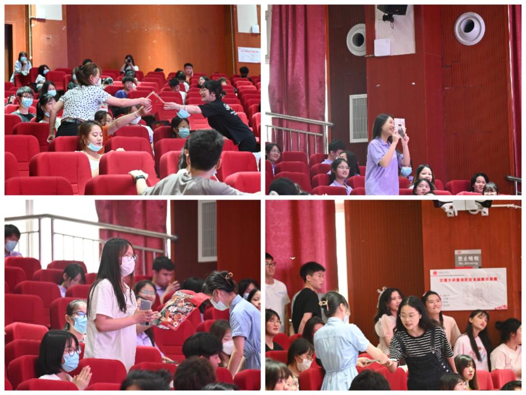 在主持人热情洋溢的开场白后,各班学生代表结合PPT、视频等汇报大一学年班级工作与成果,并由班级所有成员为大家带来精彩绝伦的演出。法学二班唱跳《爱你》,甜蜜的歌曲、活泼的动作,在爱意里回顾大一生活。少年是意气风发、是草长莺飞,法学三班的全体同学放声高歌《骄傲的少年》,唱出青春肆意、唱出拼搏的朝气。“众神归位”,拯救被骗老人,由法学四班同学带来的小品《反诈银行》在幽默诙谐的剧情中提高反诈意识。精彩的节目悄然过半,辅导员丁兰也为大家准备了一份“惊喜”,在激动人心的抽奖环节,为幸运观众送去各类书籍、文具以及美食。