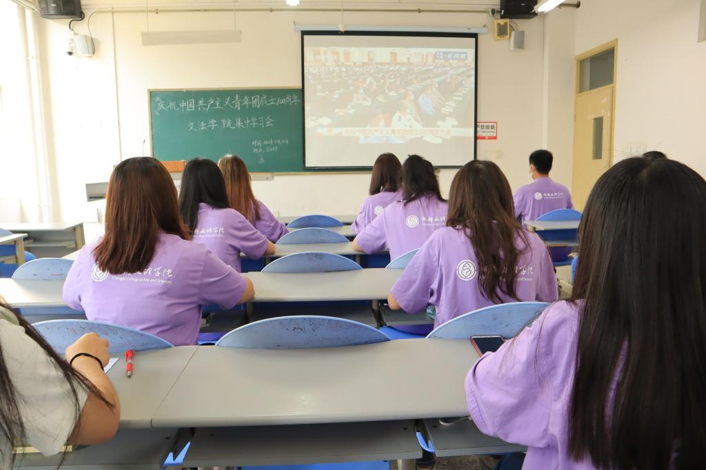 5月10日上午,庆祝中国共产主义青年团成立100周年大会在北京人民大会堂隆重举行。文法学院组织教师代表、辅导员、学生干部代表、部分班级同学在学院办公室、教室等集中观看大会直播,其他师生自行观看直播,聆听习近平总书记重要讲话。