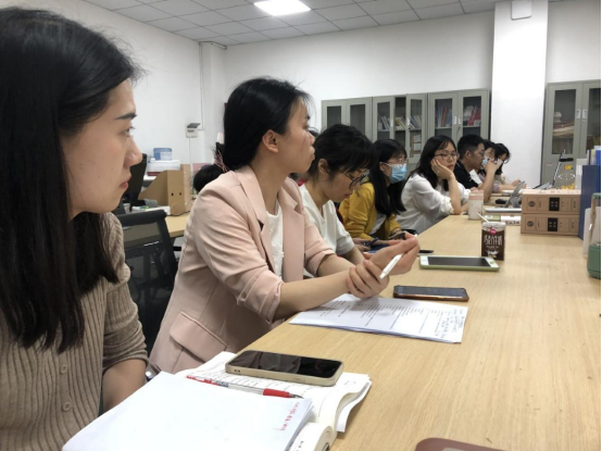 会议主要就“网络课程建设技巧分享”、“现阶段评估和教研安排”、“学生毕业论文修改情况”为议题展开。首先由刘建权老师分享微课教学视频的创作技巧,手把手教团队的老师们使用“万彩动画大师”制作视频课件,每位老师都在分享中学到了教学视频制作的小技巧。随后袁倩老师对现阶段评估要求和教研安排作出相应的部署安排,将评估和教学工作细化到每门课程,甚至每位老师,使语言学教学团队能够有效率有质量的完成评估工作和教学工作。接着由项乙朋老师对毕业生论文指导情况作进一步说明,传达了学校教务处的文件精神,并且为新老师提供了可参考的建议,帮助大家解决论文指导过程中遇到的问题。最后,主讲人提出了一些其他注意事项。会后,各门课程的主讲老师自发形成讨论小组,对教学中遇到的问题进行讨论,会议也在讨论声中结束。