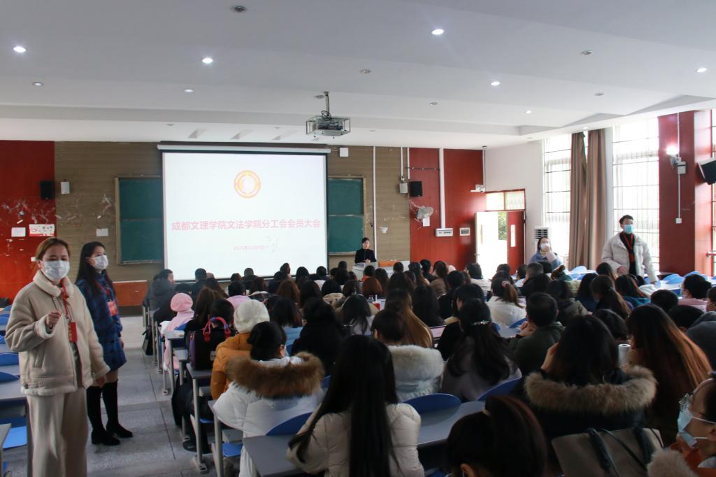 12月9日下午,文法学院于主教学楼B214召开文法学院分工会会员大会。文法学院院长徐学东,党总支书记陆明烨,副院长曹佳丽,党总支副书记兼学工办主任李明昌,马克思主义学院副院长夏冰及文法学院分工会全体会员参会。任菊主持会议。