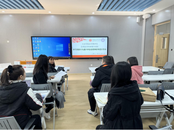 本次专题分享会共包括三个部分。第一部分是由肖老师带领大家一起学习党的十九届六中全会精神,并结合高校教育实际工作,强调作为高校教育工作者,我们应当认真学习党的第十九届六中全会的精神,牢记初心使命,践行以人民为中心的发展思想。第二部分是应用法学科研教学团队老师交流学习心得,老师们依次分享了对党的第十九届六中全会学习成果,并对如何在思想上、生活中引领学生践行社会主义核心价值观进行了广泛地探讨。第三部分是由肖老师对团队进行阶段性工作部署,明确在今后的教学工作中要结合党的十九届六中全会精神,狠抓课程思政教育,帮助学生树立正确的人生观、价值观及世界观。