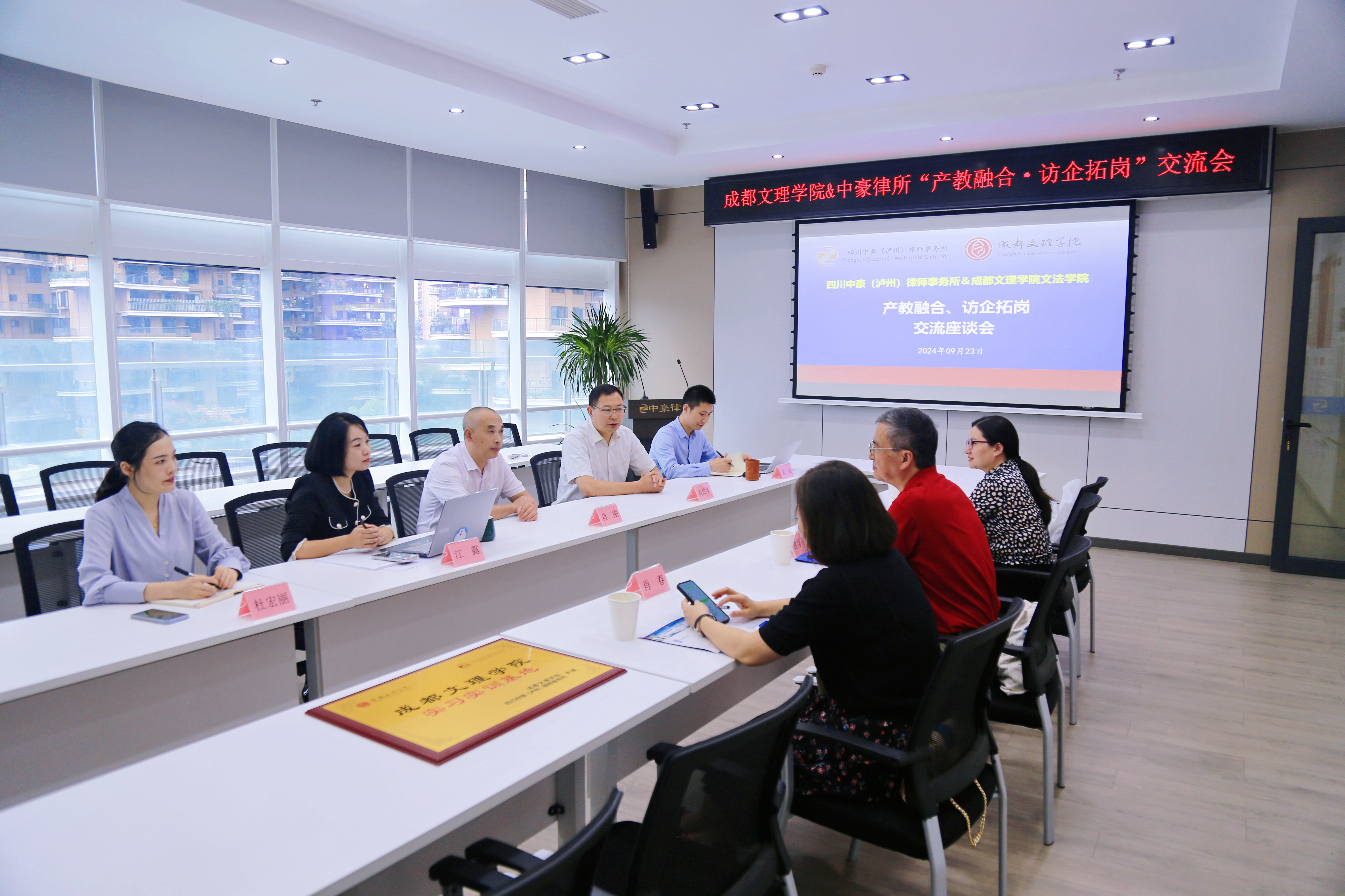 为贯彻落实学校“产教融合.访企拓岗”专项行动要求,拓宽毕业生就业渠道,9月23日,文法学院院长徐学东带领院长助理、应用法学教研室主任肖春,法学专业教师梁丹一行赴位于泸州市江阳区的四川中豪律师事务所开展“产教融合.访企拓岗”专项交流活动。四川中豪(泸州)律师事务所管委会主任肖刚,管委会委员高武华,执行主任江露、陈波,合伙人杜宏丽等热情接待。