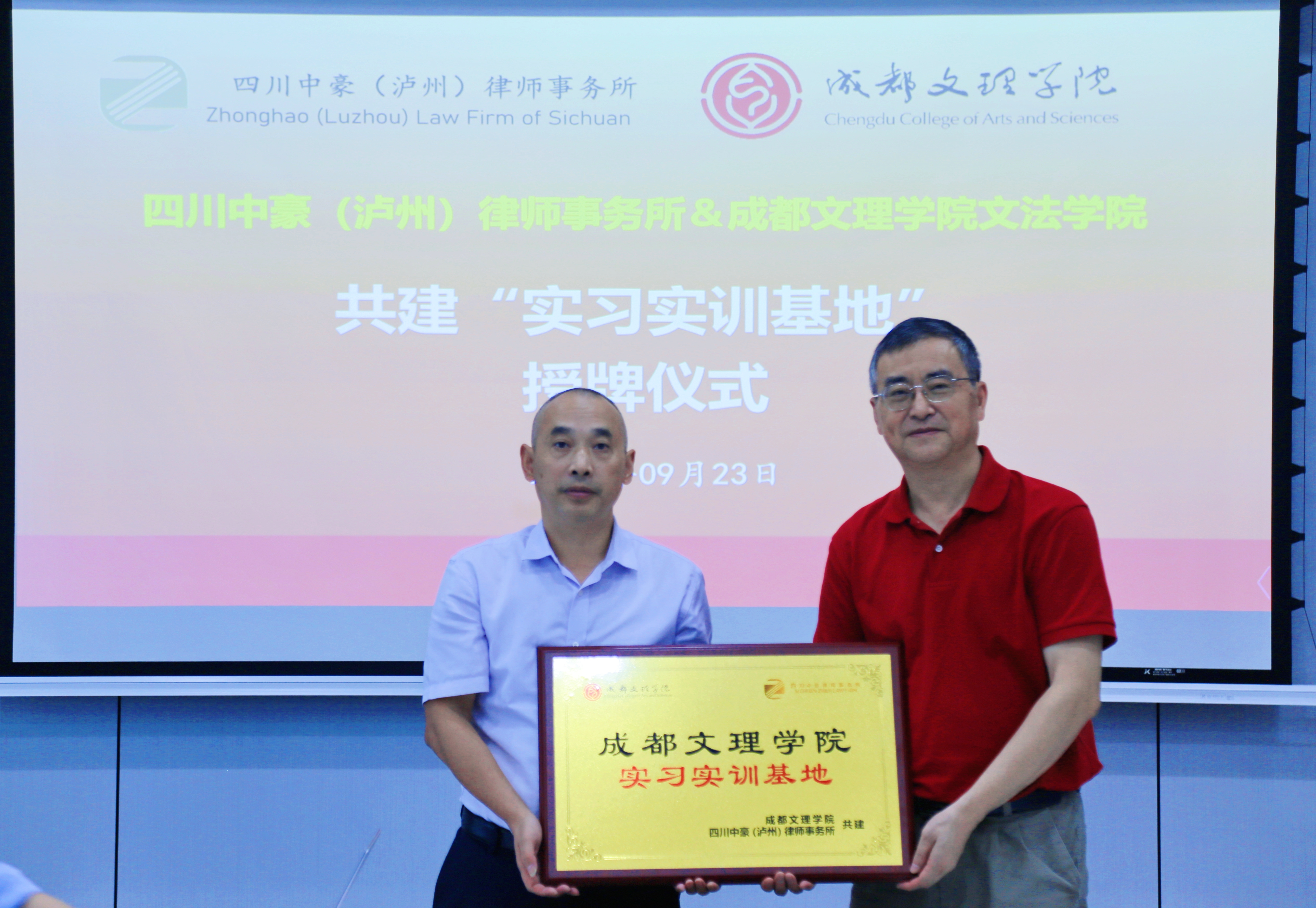 最后,双方举行“共建实习实训基地”授牌仪式。此次合作不仅为法学专业学生提供了优质的实习就业平台,也为深化应用型法律人才培养奠定了坚实基础。未来,双方将在理论研究、课题申报、职业培训等领域进一步拓展合作空间,实现互利共赢。
