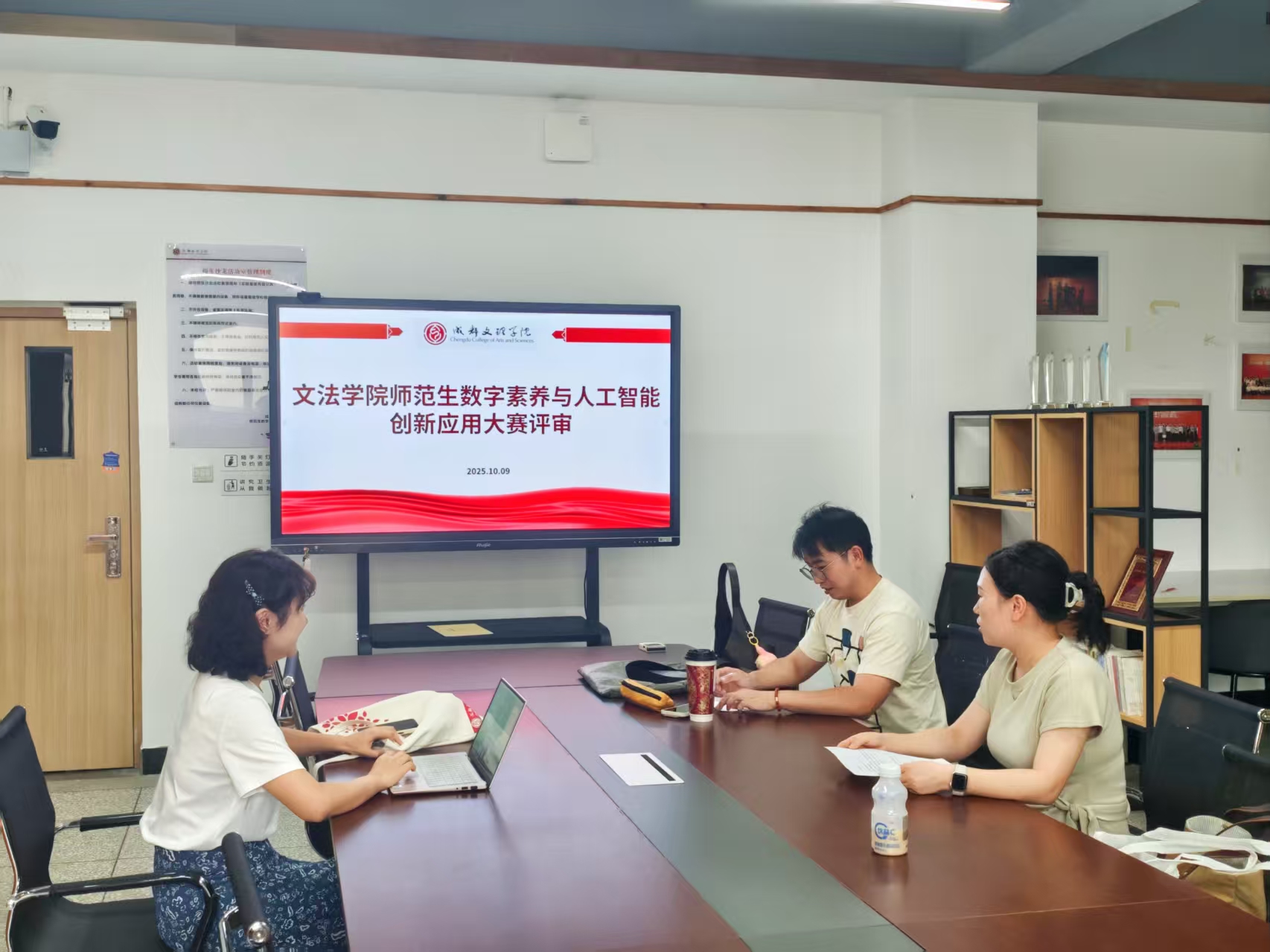 2025年10月9日,文法学院组织开展师范生数字素养与人工智能创新应用大赛校级选拔评审活动。来自学院四个教研室的评委团队严格参照评分标准,经过多轮细致评议,最终从赛道一选拔出4项优秀作品,赛道二评选出3项创新方案,共7支队伍成功入围校级决赛,将代表学院冲刺更高层级赛事。