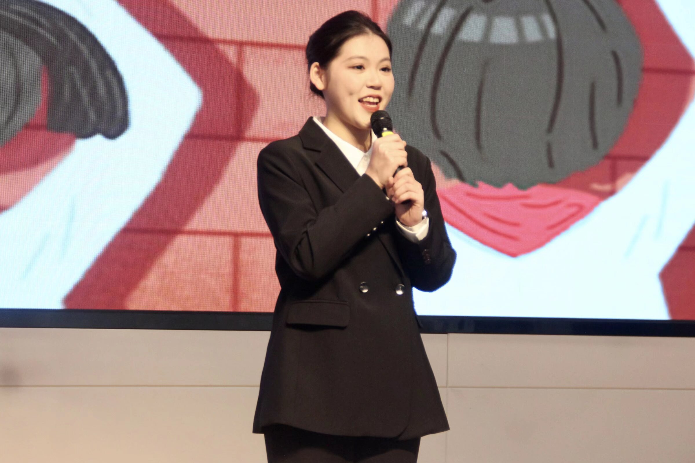 活动伊始,主持人宣读比赛规则并介绍各位参赛选手。随后的演讲环节异彩纷呈,选手们从多元视角展现了青年的思考:有的分享育人点滴,传递“帮助更多孩子”的朴素心愿;有的讲述与外公守护非遗的经历,彰显青年对传统的珍视;有的立足于社会现实,以逻辑严密的论述和犀利的言辞,对当代消费主义或人工智能伦理等议题进行了深刻剖析与批判。她们或慷慨激昂,或娓娓道来,凭借生动的语言、真挚的情感和自信的风采,将现场观众深深吸引,充分彰显了新时代青年既有家国情怀又有全球视野的崭新风貌。中场互动环节,“听歌识曲”“猜字谜”“看表情猜成语”等活动引发热烈反响,观众踊跃参与,现场气氛活跃。