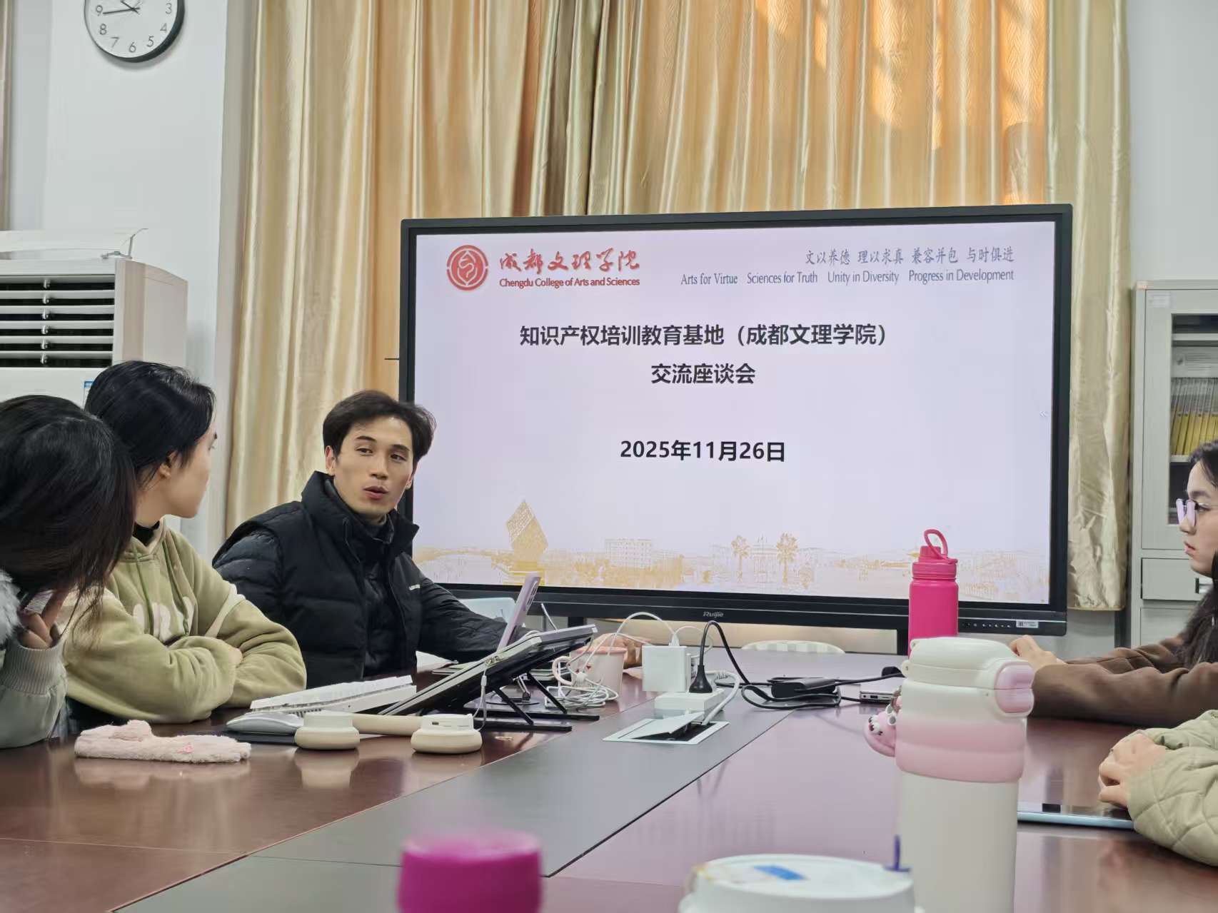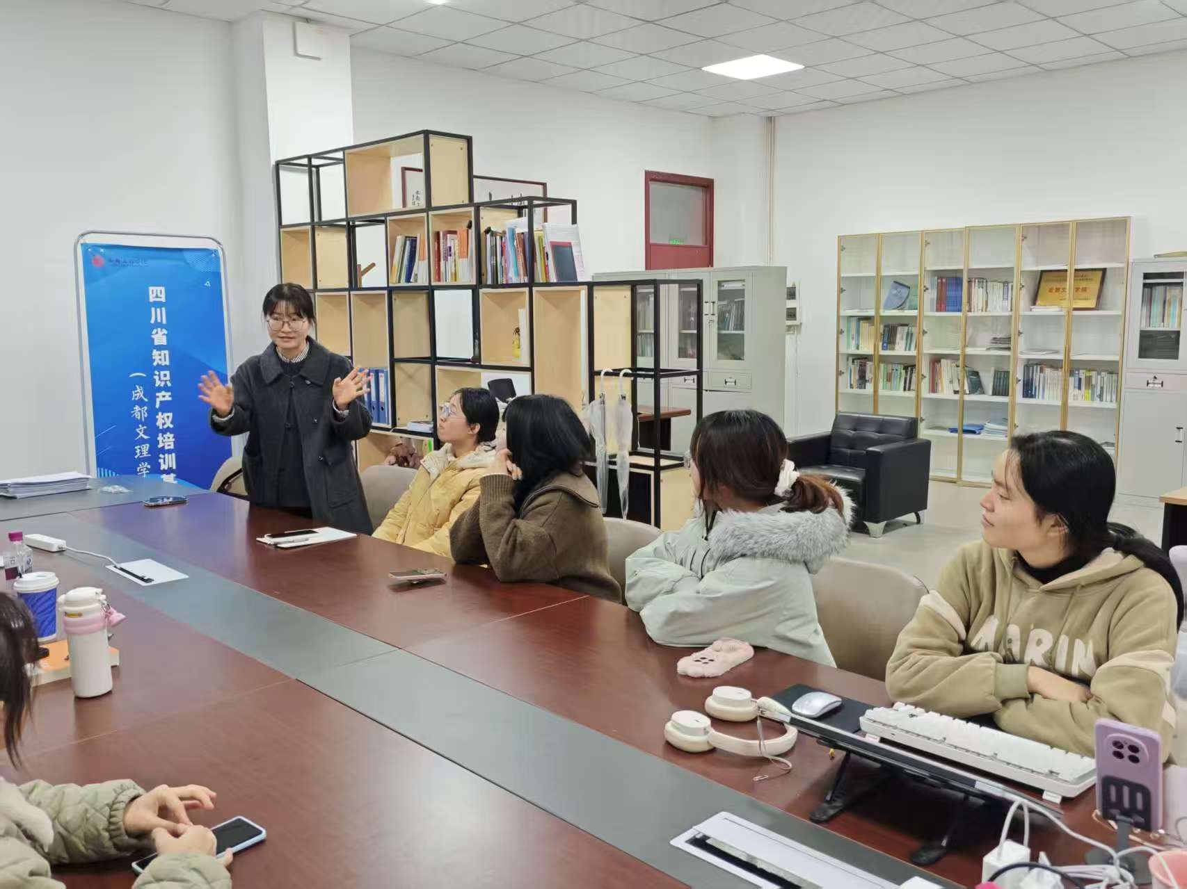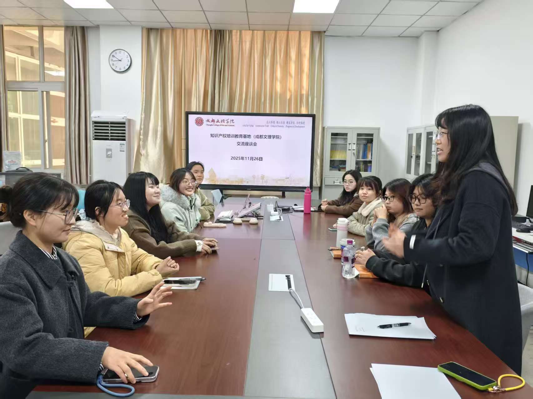 2025年11月26日,知识产权培训基地负责人牟杰、基地教师赵倩和闫永波老师在知识产权基地办公室,就科研竞赛和论文写作等多方面的工作,对基地学生进行了深入指导。
