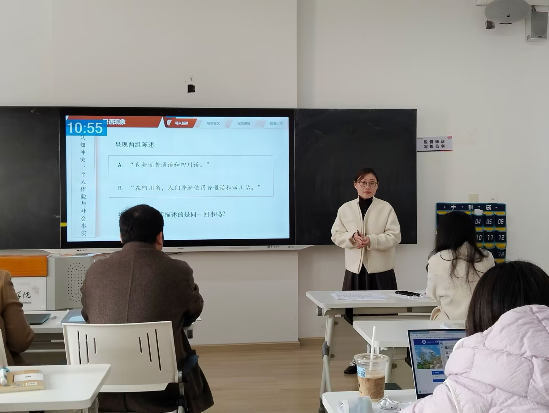 本次赛课活动得到了教研室全体教师的积极响应和精心准备。参赛教师围绕语言学核心课程,如《现代汉语》、《古代汉语》、《语言学概论》等,进行了精彩的教学展示。《现代汉语》课程组的聂莉洁和肖佳丽老师分别选取了“短语的特征及分类”和“现代汉语的特点”这两个知识点进行了无生授课;《古代汉语》课程组的任佳和刘思佳老师分别选取了文选《鞌之战》和《论语》的片段进行了深入浅出的讲授;《语言学概论》课程组的吴璐璐老师围绕“语言接触中的双语现象”这一知识点展开了深入的讲解。在赛课过程中,教师们充分展示了扎实的专业功底、先进的教学理念和多样的教学方法。