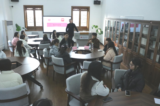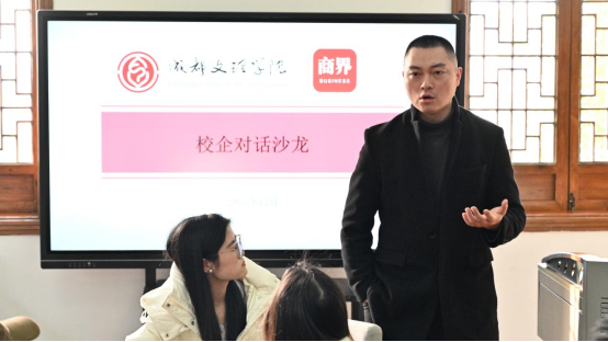活动首先进入主题分享阶段。MoMo R&B Club主理人周景结合自身多年创业经历,分享了文旅与消费体验领域的运营思路。从团队搭建、商业空间管理到品牌调性塑造,他以真实案例呈现了创业过程中面临的挑战与应对策略,为有志于从事文化创意行业或计划创业的学生提供了可参考的路径与启示。