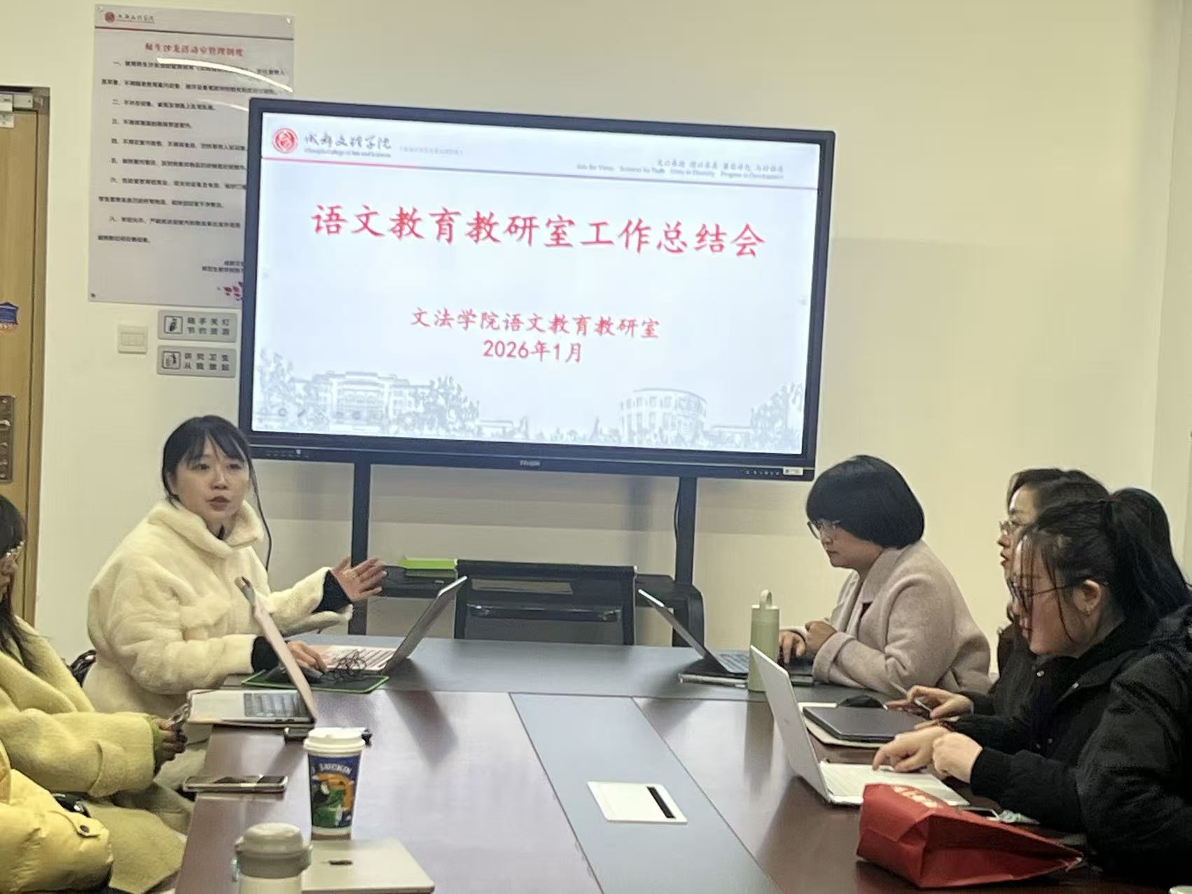 2026年1月16日,文法学院语文教育教研室于A407会议室,召开2025年度教研室工作总结会,全体教研室教师齐聚一堂,共同回顾2025年度工作成果,交流教学科研经验,并对新学期工作进行部署与展望。会议由教研室主任张玉萍主持。